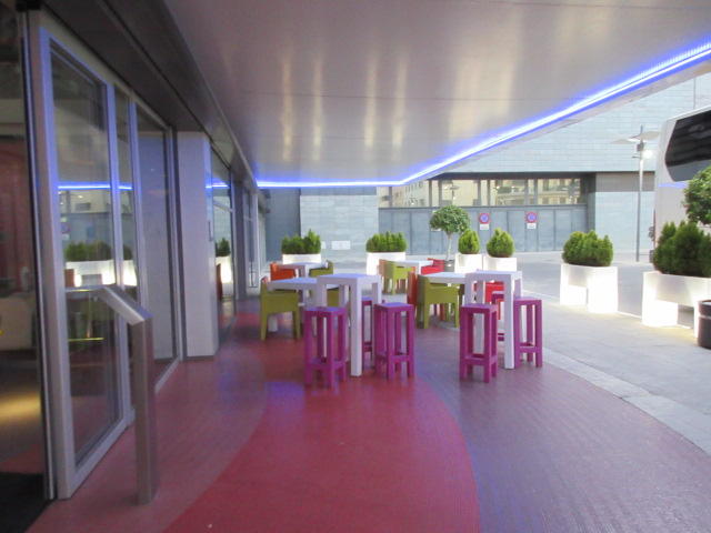 グラナダからのバスターミナルに近く、口コミがよいので利用しました。新しいホテルですが、バスルームのスライドドアが動かなくなり、ホテルの人に直してもらいました。マラガ駅直結なので、食事にも買い物にも便利。前にアウトレットがあり、激安で食料品を買う事が出来ます。市街地へはバスになり、少し距離があります。マラガ空港へは電車で8分、マラガ駅は広いので、ホテルで電車駅への入り方を教えてもらってよかったです。空港に行くには回転ドアでないメインエントランスから出て左です。館内の滑り台は飾り?でしょうか2階から1階へ降りる奇抜なデザインになっています。夜遅くまで1階のバーがあいていて、飲むことができ、明るいので、安心です。