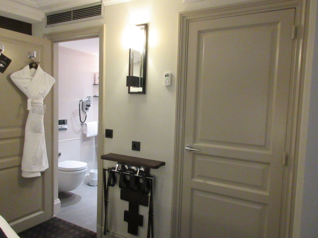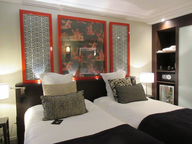 オペラ座とルーブルの間のホテルを探して、価格の折り合いのついたホテルです。アコーホテルズのサイトで見つけました。ワンフロア4部屋の小さなホテルで外観はしょぼいですが、中はとてもよく、完璧に近いです。赤と黒のおしゃれな内装、ロビーはよい香りです。室内は静かで綺麗、バスタブが深くて日本人にはよいです。可動式シャワーあります。部屋の広さもスーツケース広げられて、高級ホテルばかりのこの界隈ではコスパがよいです。室内に入るドアがあり、ベッドルームに入るドアもある、とドアが二重になっているから静かです。ここからすぐのアウディのショールーム、パリパがあるブルーの大きなビルを取り巻くようにレストランが沢山あります。このあたりはパリバ村?と思うほど、パリバのビルが多いから、ちゃんとした身なりの人が多く、安心できる立地です。オペラ座までは信号があるので、歩いて7分はかかりますが、ロワシーバスを使えました。