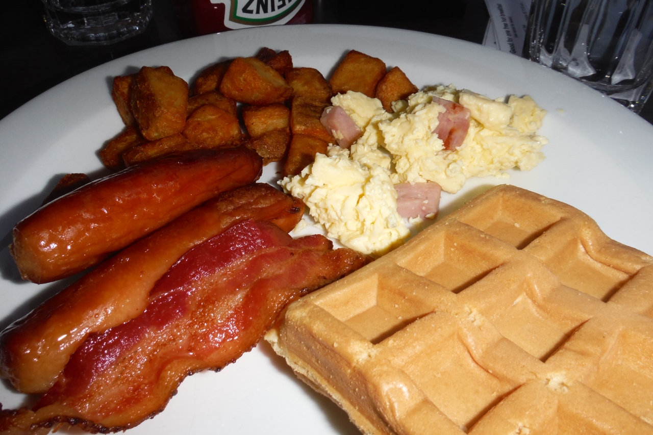また、ワッフル、スクランブルエッグ、ソーセージ、ベーコン、ポテトなどの無料の朝食付きでした。