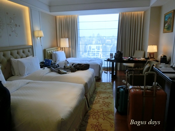 スパを利用したので部屋のお風呂は使いませんでしたが、レインシャワーもテレビもありました。トイレは最新式のシャワートイレつき、手洗いも別についていました。アメニティーはアロマテピー&アソシエイツ、お茶菓子はオークラのパイナップルケーキ(かなり美味しい!)でテンションあがりました。