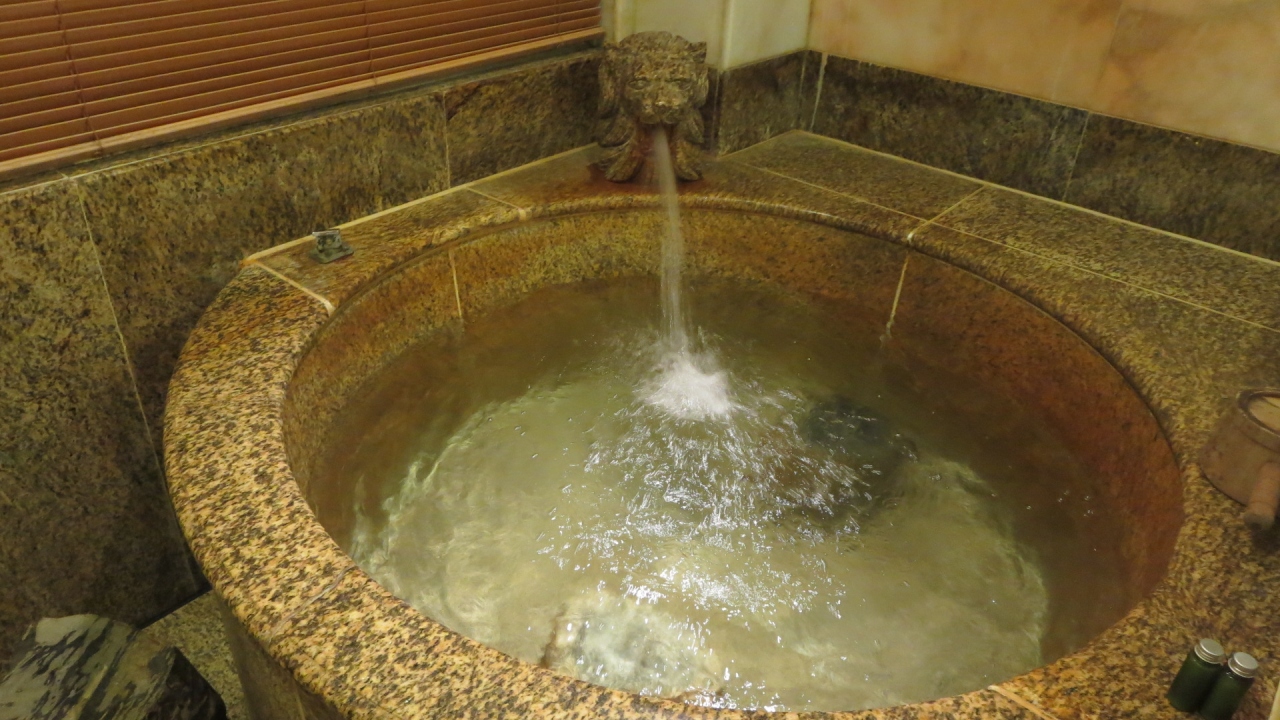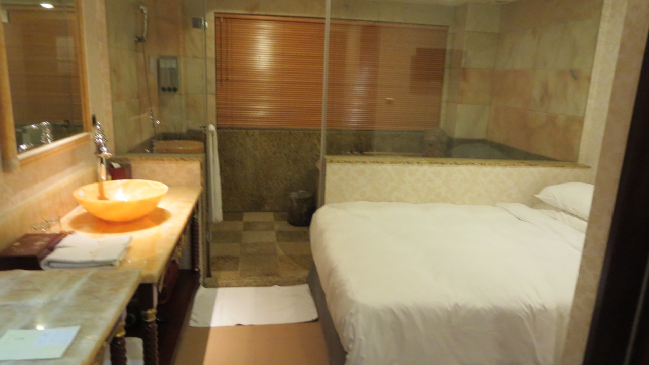 部屋の3分の1がバスルームという、まるでお風呂にベッドが置いてあるかのような、湯治には最高の部屋でした。