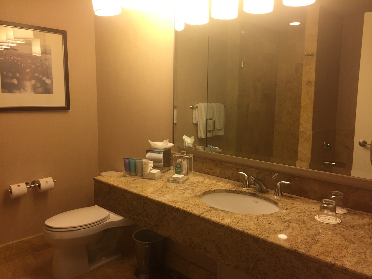 コンラッドブランドにしては安く、それでいて部屋は十分な広さ、バスルームも広くバスタブとシャワーは別です。ただしバスタブは横幅はあるものの、かなり浅く湯船にゆっくりつかる感じではないです。