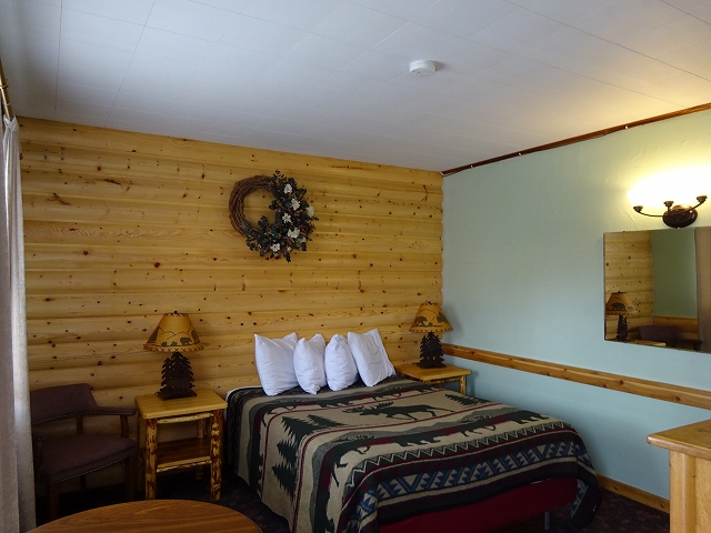 イエローストーン国立公園の中にも宿がありますが、高いのに満員です。