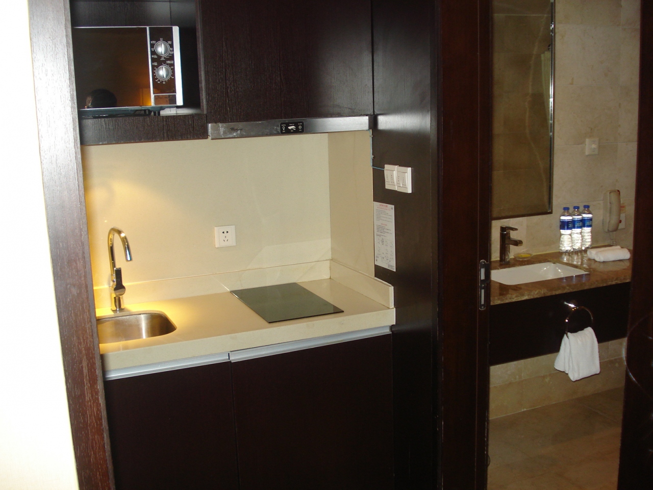 ちょっと前の格付けホテルといった感じだが、部屋も広く、エレベータにも鍵が必要など防犯対応も良かった。浴室はちょっと古くなった感があった。ちょっとしたウォークインクローゼット、キッチンコーナーのある部屋であった。朝食は作りたての麺、点心など中華や洋食が充実。フルーツなども美味しかった。