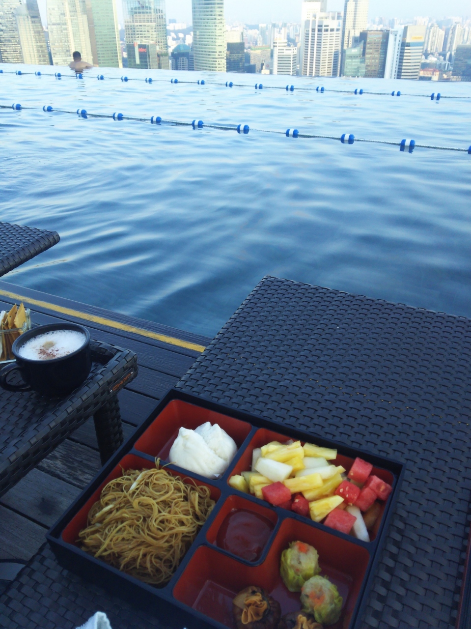 部屋の中はいたって普通のホテルですが、なんと言ってもここのプールは唯一無二です。あさ、昼、夜、全ての時間帯に入りましたが、昼間は凄く暑いですし日よけが無いため日焼けします。夜は夜景も一望でき日焼けもしないのでおすすめです。朝ごはんをプールサイドで食べようとオーダーしましたが値段は高いのに美味しくない弁当のようなものが出てきてガックリでした。