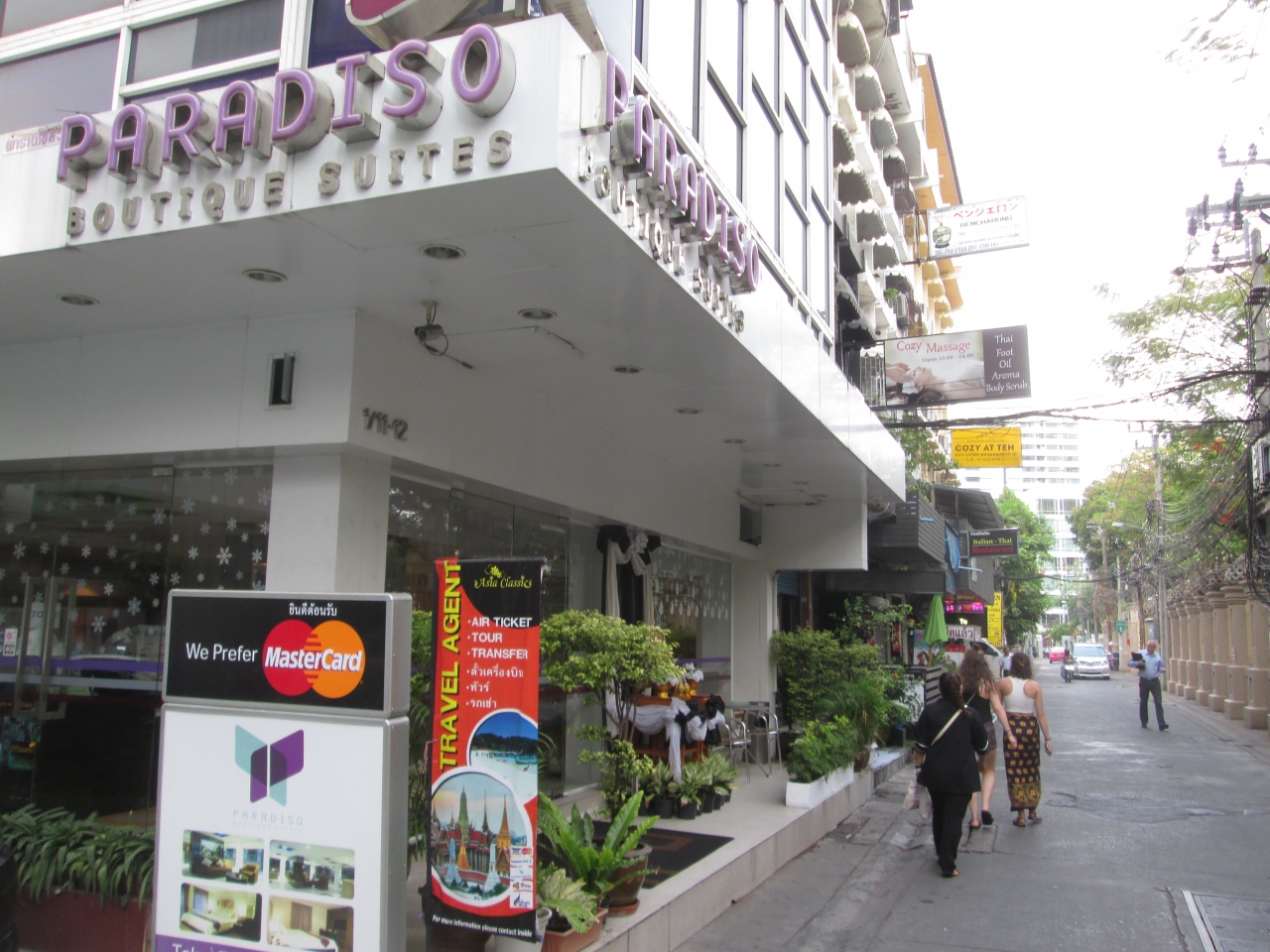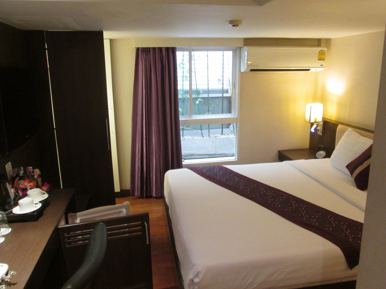 3回目の宿泊である。スクンビット通りのソイ10を入るとすぐのところにタイのカラーである紫色のホテル名が目印で分かりやすい。コスパの良いミニホテルで、毎回感心するのは、館内、部屋はきれいに掃除されていて、清潔さを感じることである。