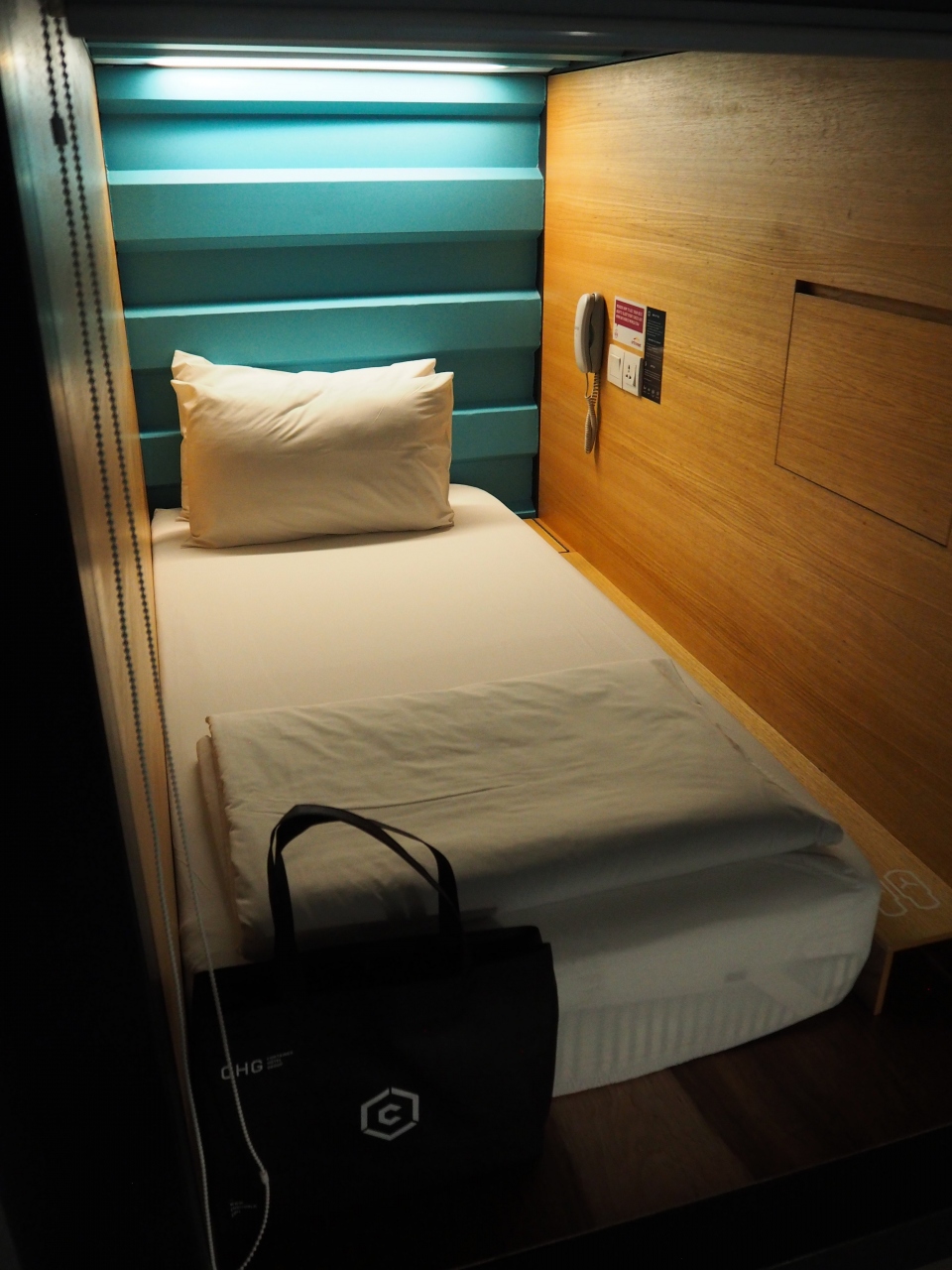 チェックインすると、バスタオルとペットボトルの水の入ったバッグをもらえます。