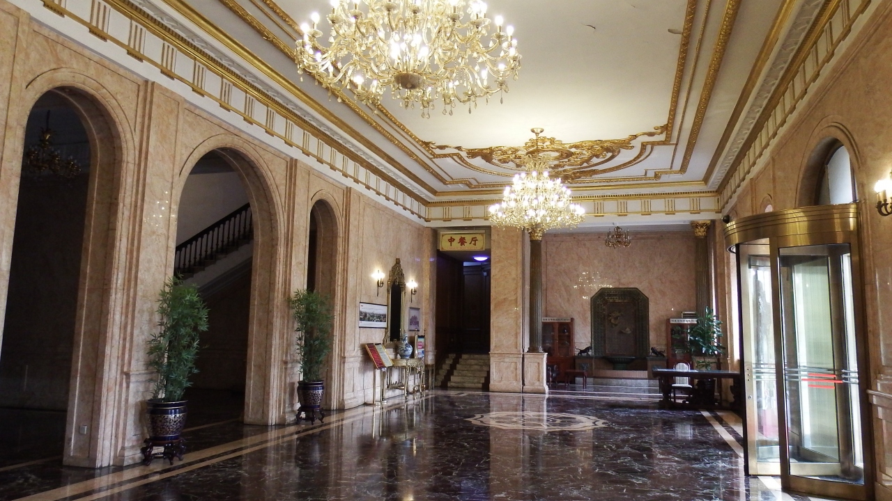 チェックイン時に見学コースを展示館長の案内で回る。日本語が堪能。写真撮影はロビー以外は禁止との事。2階の応接間、ダンスホール(で朝食時には自由に撮影ができたし、廊下、階段もなども撮影できた)、溥儀や杉原千畝が使用した部屋(ベッドルームに書斎)など。宿泊客の多くは日本人だという。場所は一等地だが老朽化し施設・設備、サービスも料金も中級レベル、このホテルに意味を見いだして選択するのは、旧大和ホテルに思いを馳せる日本人くらいなのであろう。