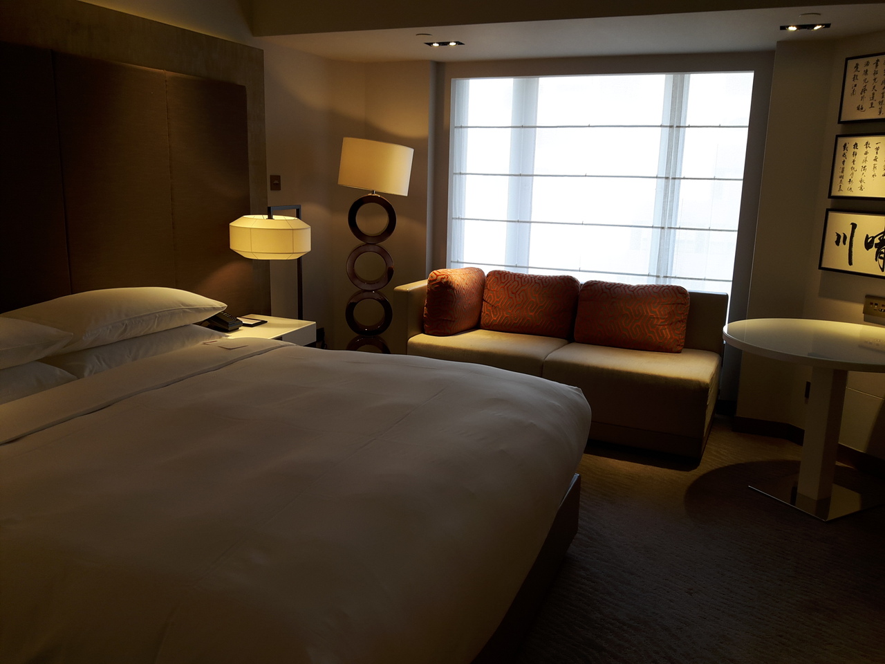 101に近く、ハイセンスなエリアにあります。ダブルの部屋は広さも十分で、中国の山水画や書が飾られ、落ち着けるインテリアです。アメニティも上質なものをセレクト。シャワールームは使いやすい造り。バスローブも上等なもので、快適なホテルライフを楽しむにはぴったりのホテルです。