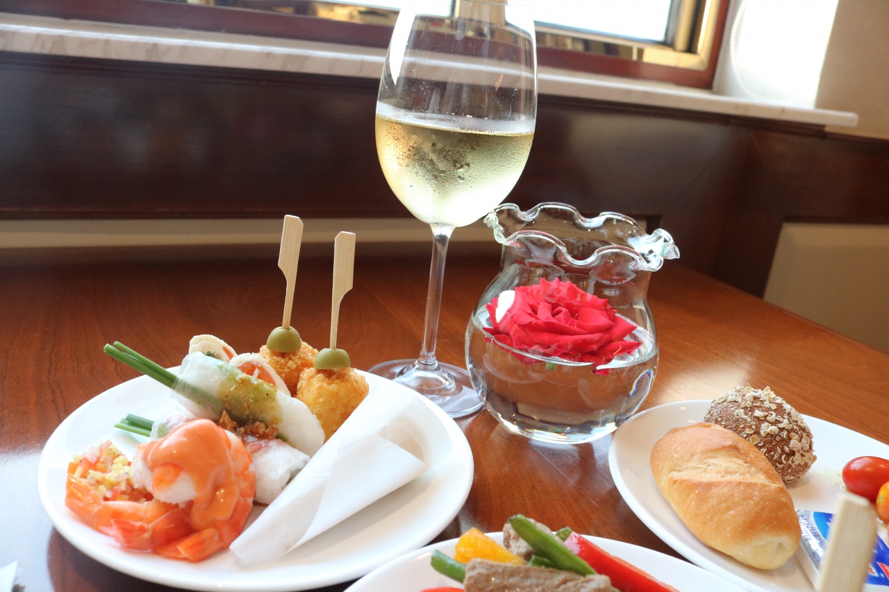 19時まではアルコールがフリー、ちょっとした軽食もありましたが、中国人の方々など騒がしい人々がいた時は閉口しました。