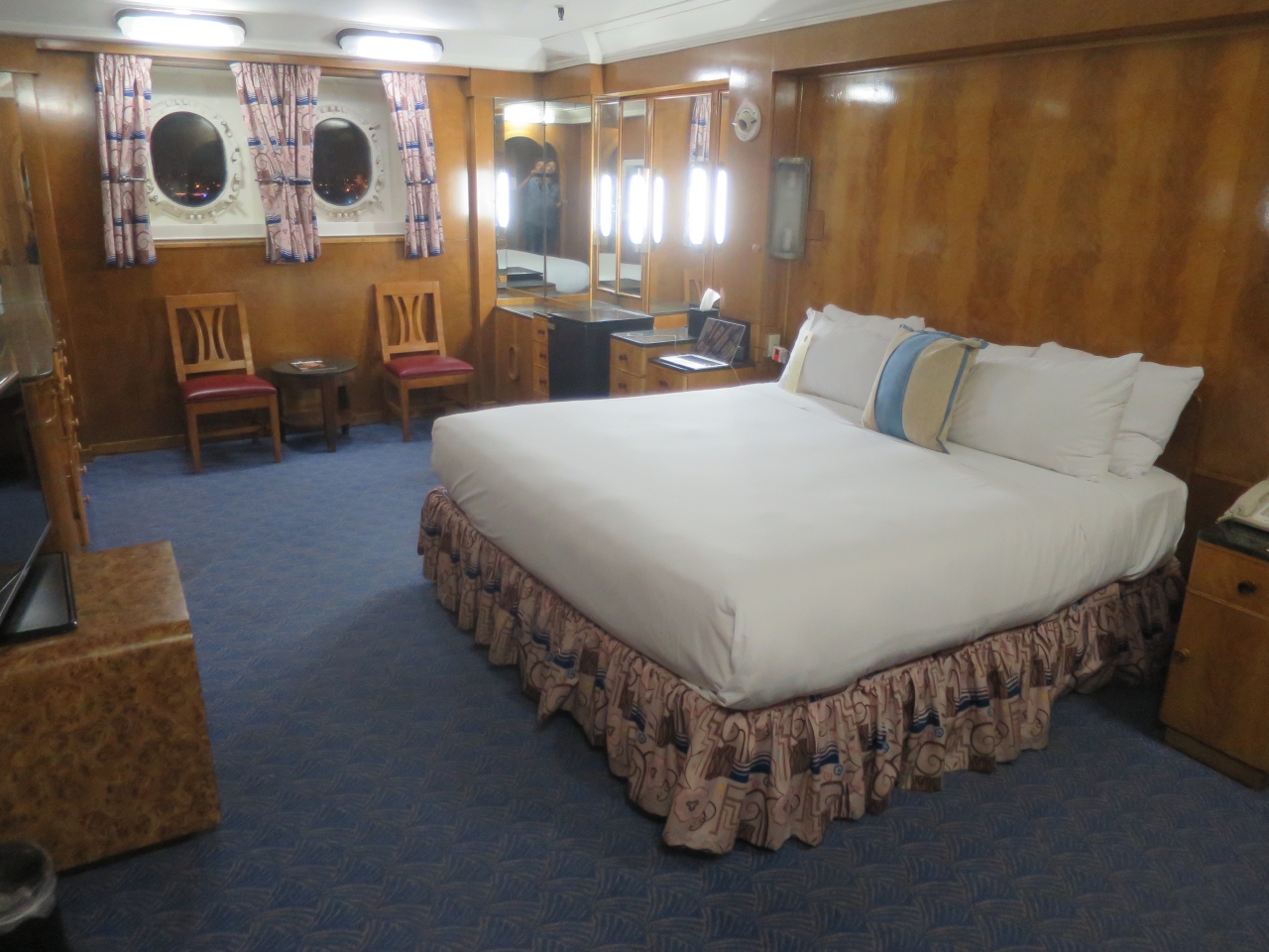博物館としてロングビーチ港に係留されている豪華客船のクイーンメリー号。その当時の1等船室がホテルの客室として利用されています。歴史あるウッディなインテリアは非常に落ち着き、当時の船旅をしているかのような疑似体験が出来ます。水回りは少々年季が感じられます。