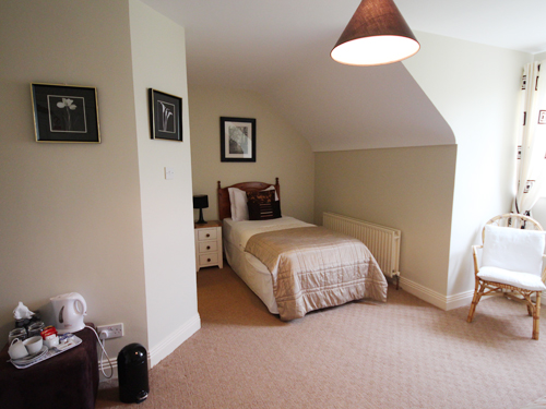 階段しかありませんが、チェックイン前に荷物を預けたら、チェックインする時にはオーナーが部屋まで持って上がってくれていました。とても明るくて感じの良いご夫婦が経営されています。部屋は19平米で、とても広いです。ただサイドテーブルのみで、テーブルがないのが、ちょっと不便でした。バスルームはシャワーのみ。バスタブはありません。