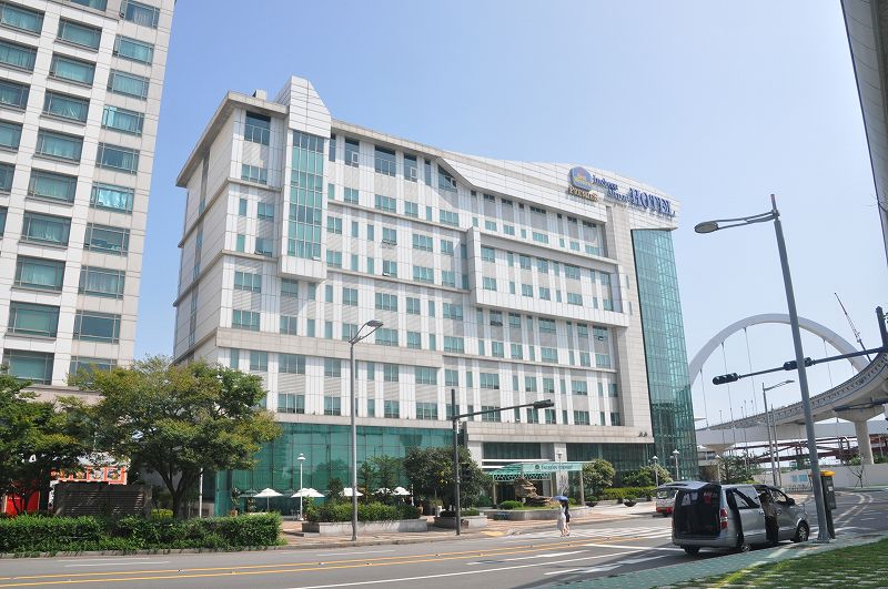 インチョン国際空港の近くにある。空港の2階14番C乗り場とホテルの間を結ぶ無料シャトルバスがある。ただし、昼間は1時間に1本しかないので1本のがすと1時間近く待たされることになる。代わりに空港内を循環しているフリーシャトルバスが使えた。空港ターミナルビル3階の12番から乗る。ほぼ15分おきなので昼間はホテルの無料シャトルより便利だ。空港を出て最初の停留所「eMart前」で降りて、2、3分歩く。室内のあれこれの表示がハングルのみで、英文がない。トイレのシャワー便座は文字とともに絵があるのでなんとか分かったが、壁にあるエアコンの操作盤はハングル文字で分かりにくかった。フロントのスタッフ、掃除のおばさん、皆さん親切だった。
