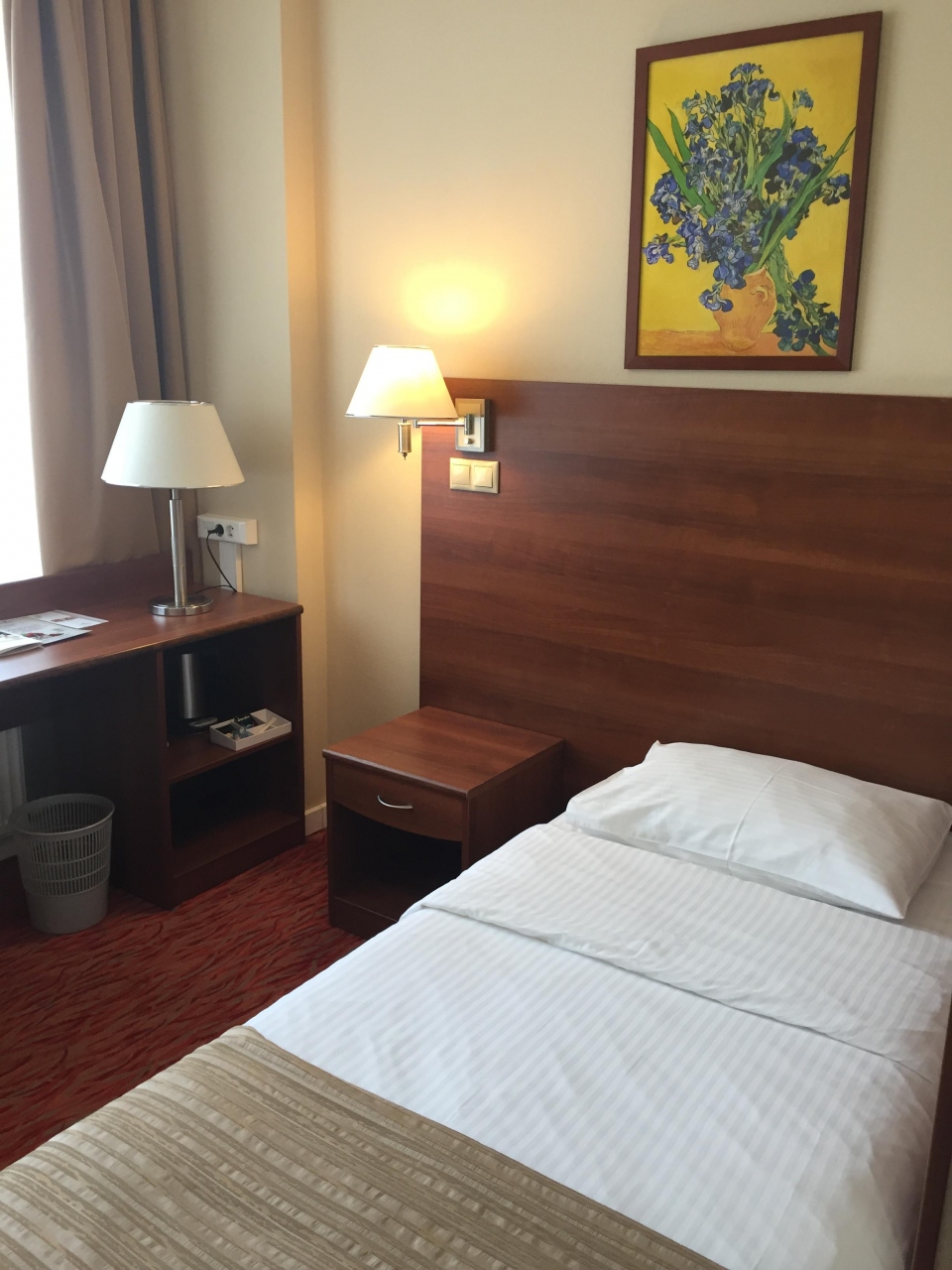 初の海外女一人旅で利用しました。ロシアの情報はネットでも少ないし、結構古い時期のクチコミが多かったので不安でした。街の中心部にあるお手頃価格の『ブダペスト』と迷いましたが、低価格な事と、スーツケースを持ってうろうろしたくなかったので、駅近のこのホテルにしました。結果、大正解でした!複数の路線の駅だと出口で迷うし、エレベーターもほとんどないので、少し郊外で小さな駅のほうが便利です。中心部には大きなスーパーもないですし。