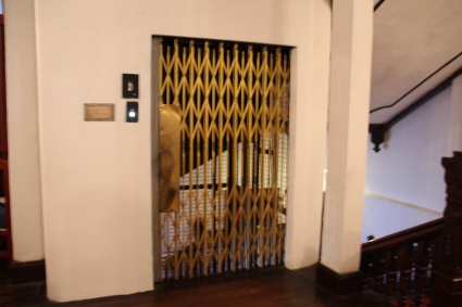 クイーンズ・ホテルはキャンディでは1番?古い格式あるホテルとのことです。その古さゆえか、エアコンとは何ですかという状況です。天井のシーリング・ファンが唯一の頼りですが、回してみたら落ちてきそうな音がして使えませんでした。お陰で、ペラヘラ祭に合わせて訪れた夏の時期の上に、すごいスコールもありましたので、湿度100%状態で快適とはとても言い難い状況でした。なお。手動でドアを閉めるエレベータは古きよき時代を思わせていました。