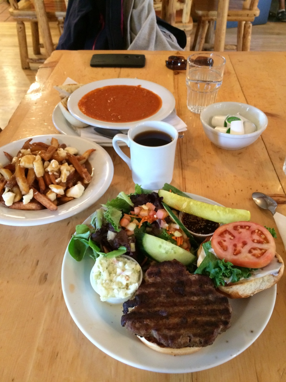 ルイーズ湖に行く前にここでブランチしました(^^) こちらに宿泊している人たちと一般客でとても賑わっていました!食べ物の種類も豊富でコーヒーはもちろんお代わり自由です。さすが北アメリカ。日本にないサービスがありありがたいです。私はこちらでハンバーガーをいただき、彼はフライドポテトとスパイシースープをいただきました。とても美味しかったしくつろげました^ ^