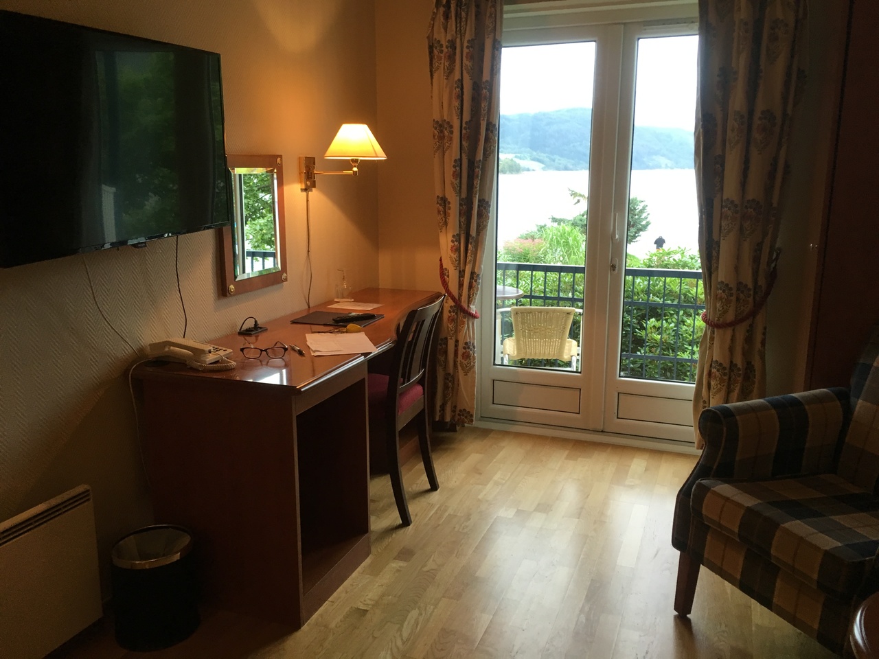 ウルヴィクにあるハダンゲル・フィヨルドを真正面に望む、抜群のロケーションが魅力のホテルです。フィヨルドを望むバルコニー付き客室がオススメです。ジム、サウナ、屋内プールもありました。鍵はカードキーで、主電源タイプなので、部屋に入ったところにあるボックスにカードを差し込むと電気が付きます。フロントは2階、と朝食会場は1階の時と2階の場合があります。フロント内線は9番、部屋から部屋への通話はダイレクト発信です。ドライヤー、バスタブが完備されていましたが、冷蔵庫やポットはありません。Wi-Fiは無料で、パスワード無しで利用可能です。カードキーはパンチ穴タイプで、キーを挿し込んだまま、ドアを開けてから抜くスタイルです。フロント近くのポーター用エレベーターは誰でも利用できますが、23時から朝6時までは動きません。廊下の中ほどにあるエレベーターは24時間利用可能です。部屋の煙探知機の反応がセンシティブなので、バスルームを利用する際には必ずドアを閉めてください。