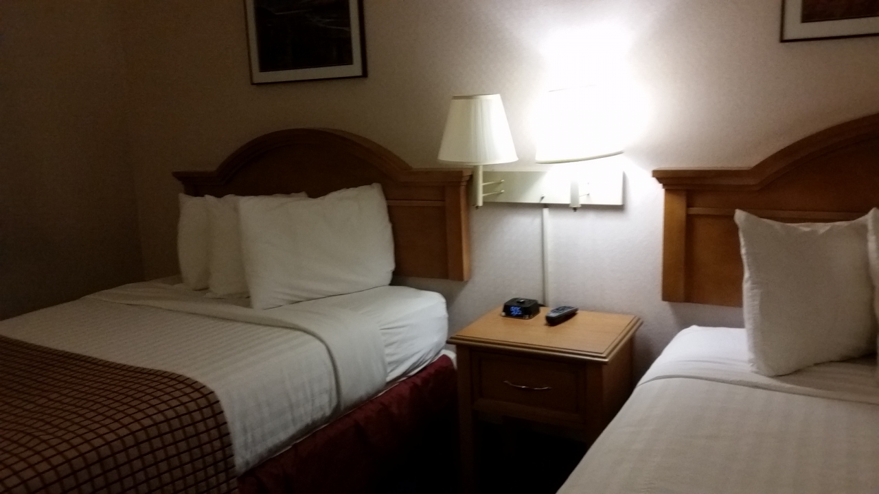 ツアーで2泊しました。街の東にありますが、碁盤の目状の道路なので、レストランや買い物は分かりやすく便利です。普通のモーテルで、部屋の広さは十分で、備品などは整っています。ロビーの脇には自由にコーヒーなどが飲めるコーナーがありました。朝食は道路の斜め向かいにあるsizzlin cafeにて。2泊目にエレベーターが故障し、3階から重い荷物を降ろすのに大変困りましたが、添乗員さんが運んでくれて助かりました。