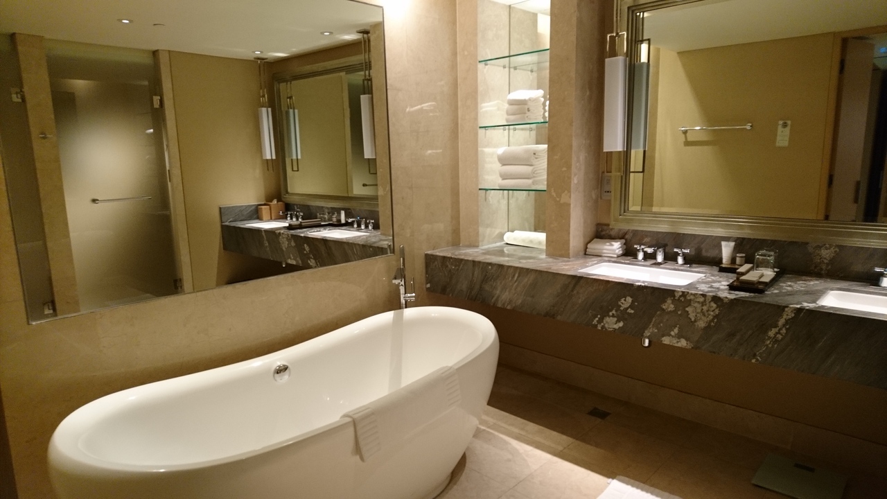 久しぶりに8月下旬に宿泊してきました。今回はクラブルームキングシティービューのお部屋にしましたが、タワー2の最上階の49階に案内されました(クラブルームの中でも高層階をリクエスト)。JALの早朝到着する便で行ったのでホテルにはかなり早く到着しましたが、11時にはチェックインすることができました(通常15時)。クラブルーム以上のお部屋はVIPラウンジでチェックインできるのですが、朝早い時間帯は閉鎖中で利用できませんでした。すぐ隣には日本人専用チェックインカウンターもありました。前回も高層階に宿泊しましたが、49階からの眺望は最高でした(夜のショーも見える)。せっかく泊まるなら、眺望も楽しめる高層階がオススメです。お部屋は62平米と広々としていて、大きなバスタブもあり、シャワールームも広いです。タワー2の55階はCLUB55(クラブルーム以上の方のみ利用可)とスパ、プールへのエレベーターの乗り換えがあります。CLUB55では、朝食、14時からのアフタヌーンティ、17時からのカクテルタイム(メニューにあるお酒もフリー)と利用することができ、これだけで満腹になります。以前宿泊した時にはプールの隣にクラブルーム以上の方が利用できるラウンジがあったのですが、移転した55階でもプールは横にありませんが眺望が楽しめます。