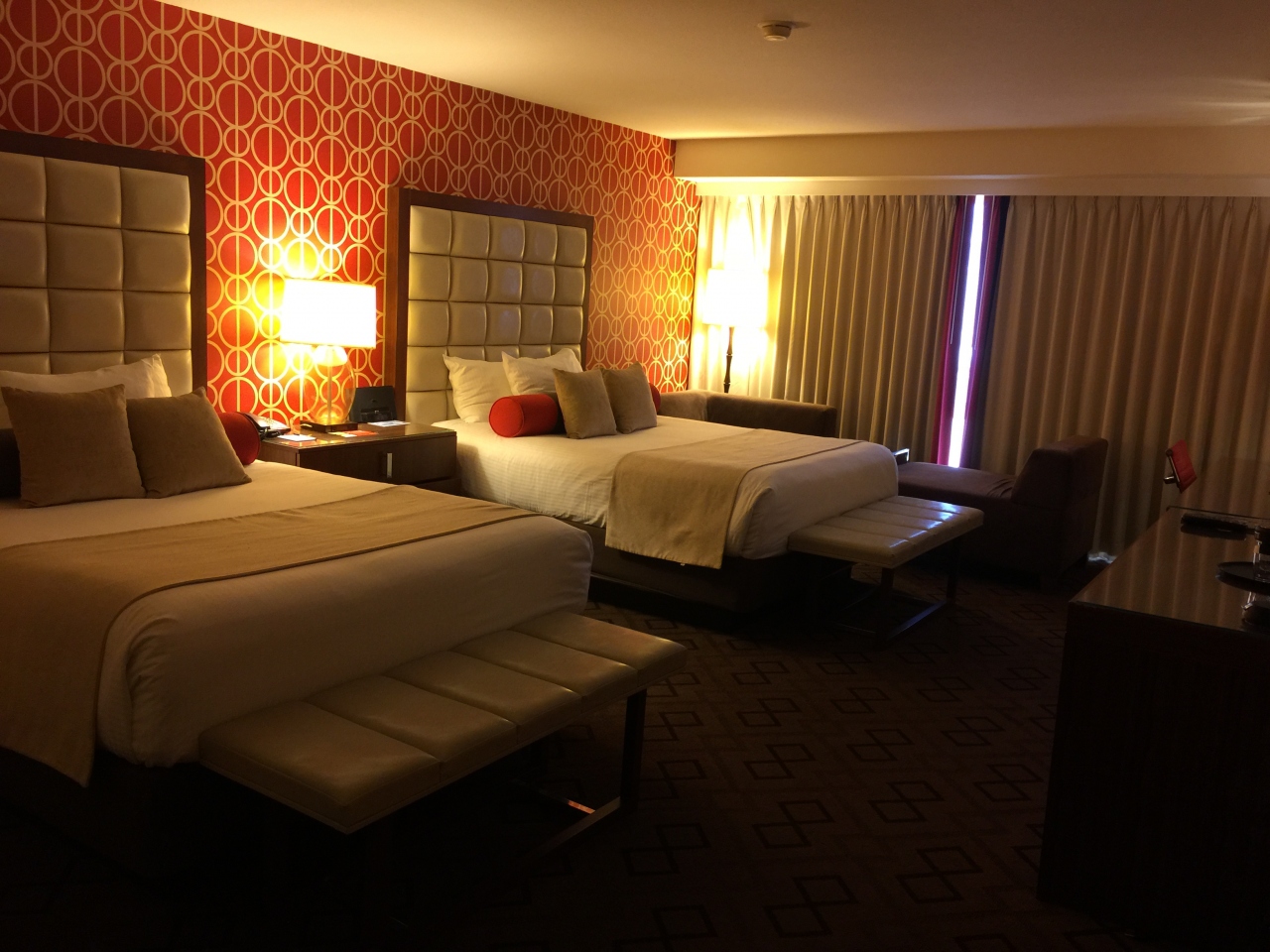 このホテルに泊まるのは3回目ですが、いつも以前のノースタワー(現インディゴタワー)だったので、初めて(以前のサウスタワー)ジュビリールームに泊まりました、理由は冷蔵庫が有るからです、ただしパリスの冷蔵庫と比べ、扉内の出っ張りが邪魔で氷を入れたアイスボックスは入りませんでした、飲み物は充分に冷やせます、