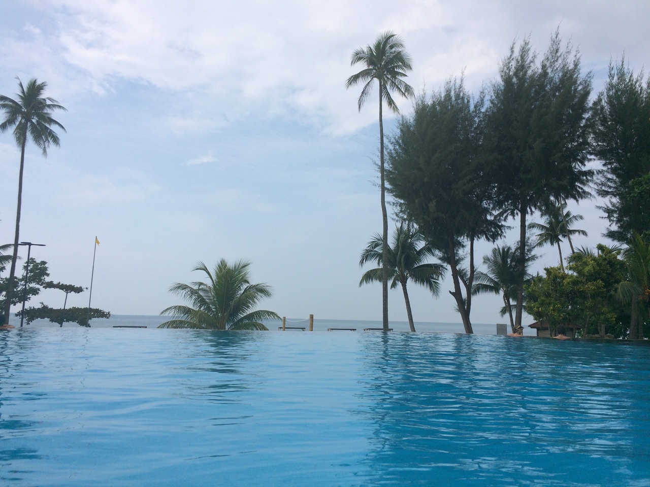このホテルのプールはインフィニティプールになっていて、そこから見る眺めは最高!一日中くつろげます。