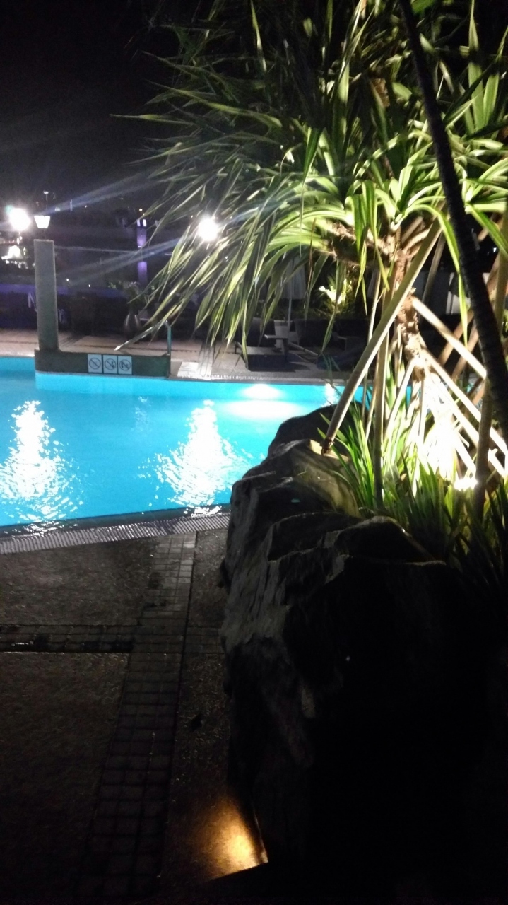 駅と反対側に隣のホテルとつながるプールはジャグジーも
