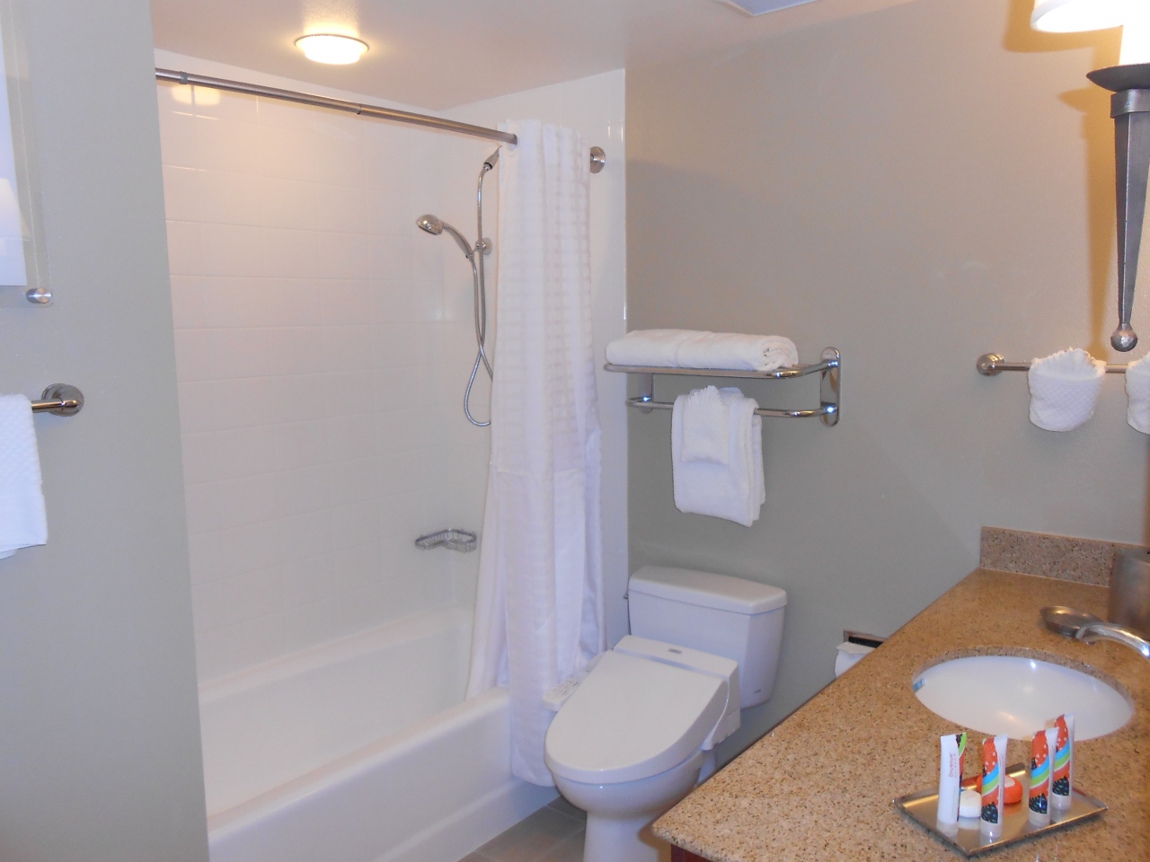 二つあるバスルームの片方はウォッシュレット付きです。お部屋の広さは2人で泊まるには十分すぎるくらいで、4泊の滞在でしたが、本当にのんびりと過ごすことができました。