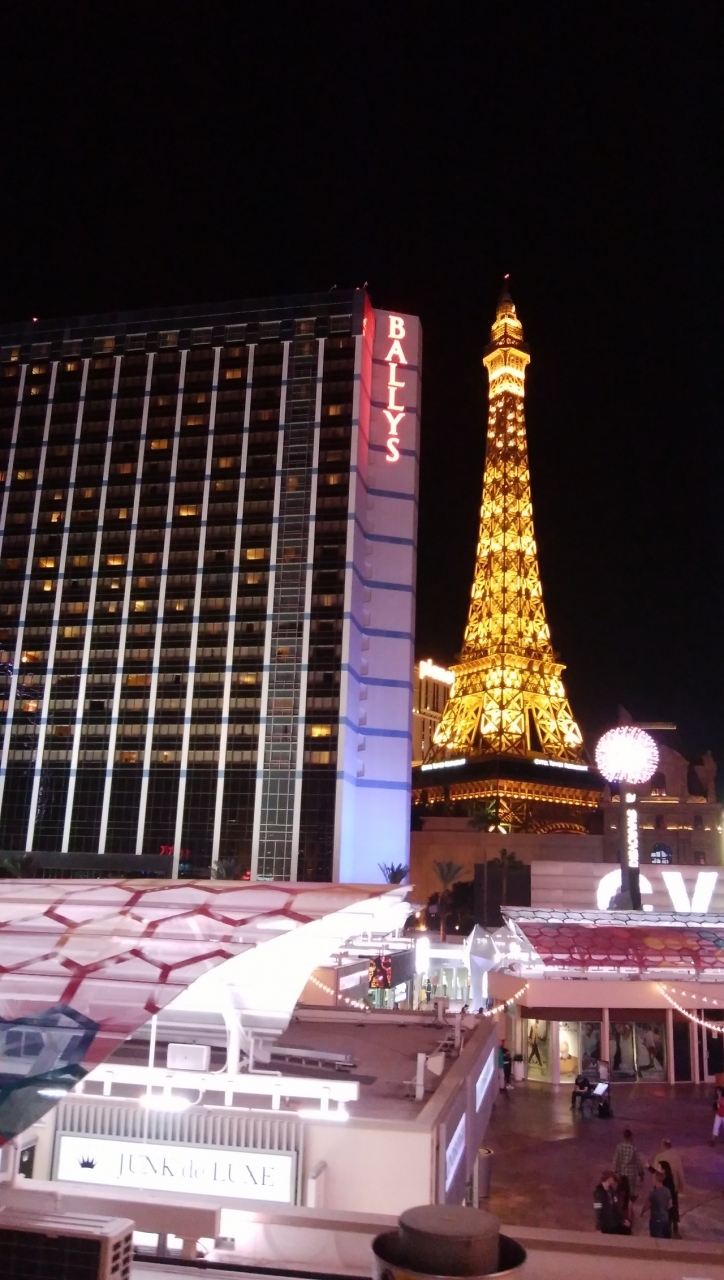 SDXもDEUCEのバス停もありませんが、パリスのバス停はグランドバザールからすぐなのと、フォーコーナーの角にあるので利便性が良いです。RTC202番フラミンゴ通りを走るバス停もすぐなので、ターゲットスーパーに買い物に行くのに便利でした。部屋は広いですが、シャワー室は無し。バスタブは狭いですが、水量は勢いよく出るのでお湯は直ぐにたまります。シャワーは固定式、アメニティはバス用フェイス用の石鹸が一つずつ、シャンプーリンスインタイプが一つ、後はボディローションのみです。カジノはいつも人がいっぱいでタバコ臭いです。エレベーターは8基有りますがなかなか来ないのが難点でした。