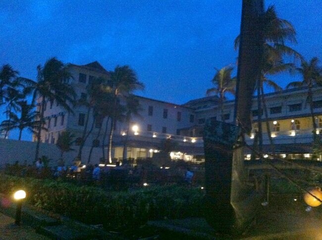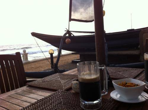 海を眺めながらの朝食、コロニアルスタイルのホテルで、ゆったり優雅な雰囲気が良い。