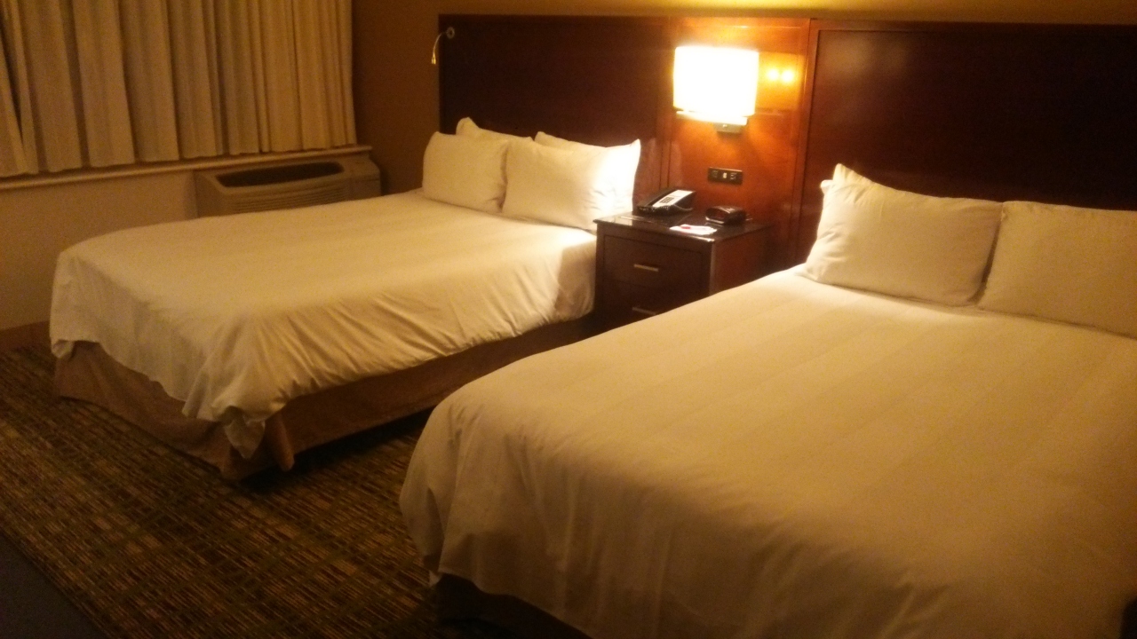 ツアーで泊まりました。ボストンから37Km位だそうで大体バスで1時間位かかりました。渋滞があるので結構かかります。ホテルは新しく部屋もバスルームも綺麗でした。お湯の調節もスムーズにできました。部屋とバスルームとの間少し出っ張りがあり、夜中に起きた時に明かりが漏れにくく助かりました。