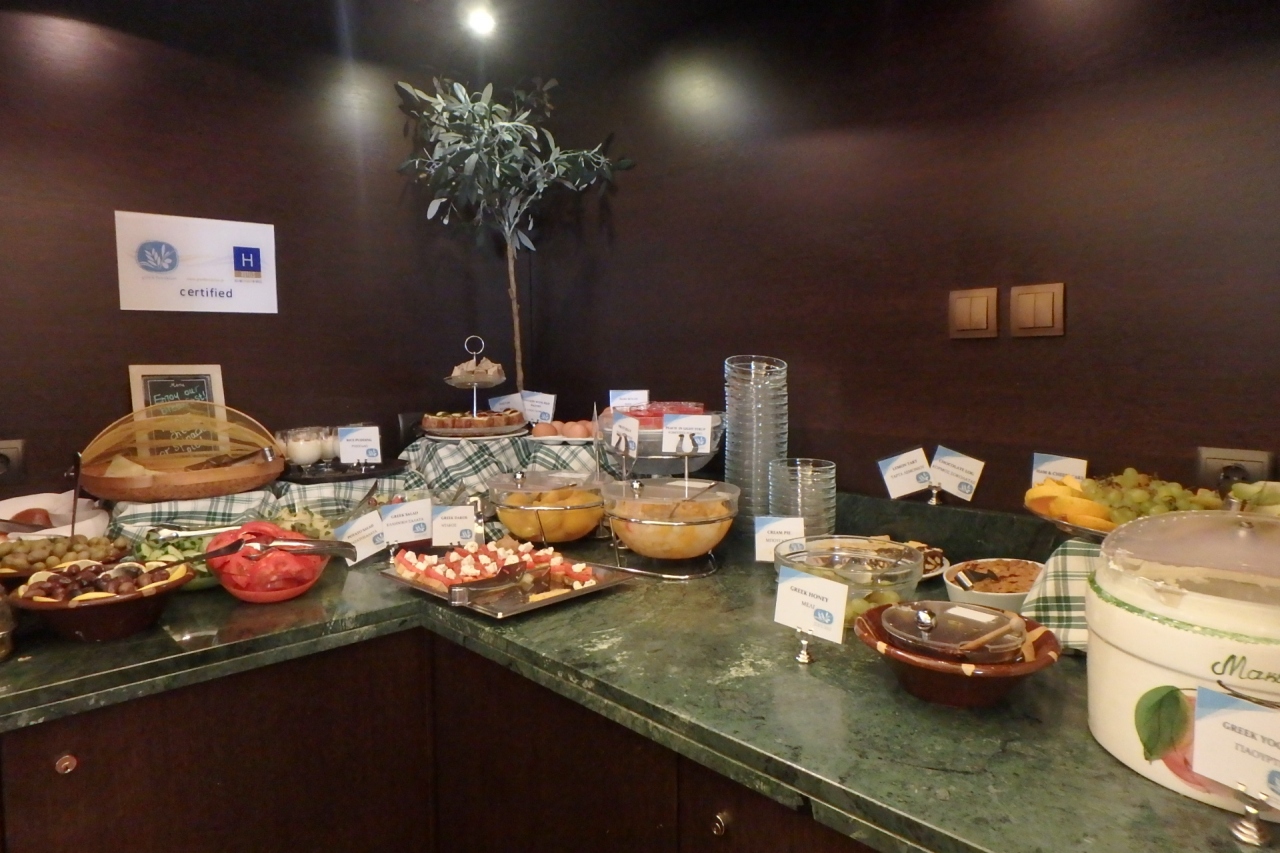 ・朝食はギリシャ料理や甘い物がプチサイズで並んでいます。満喫!