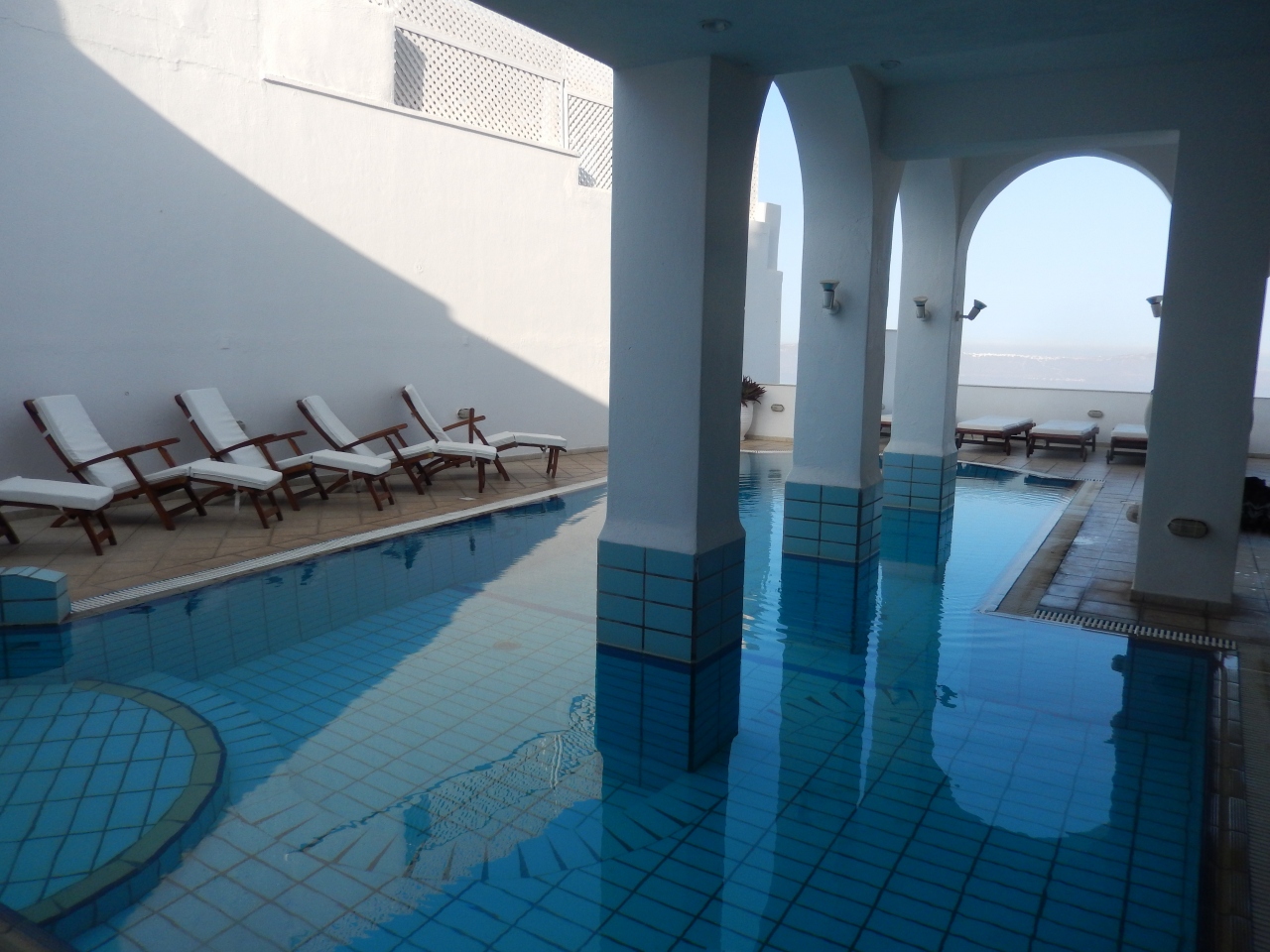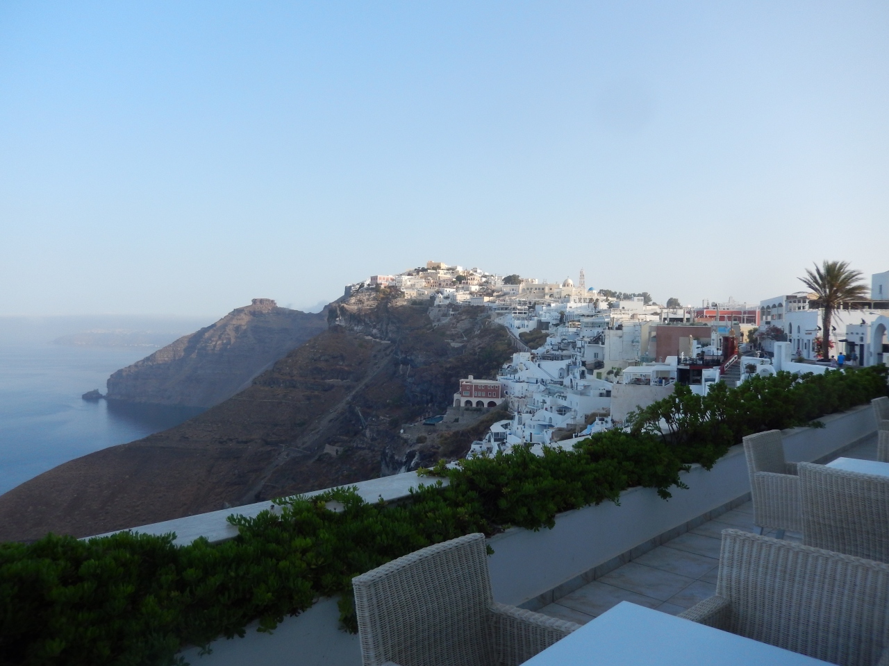 朝食のレストランから海とフィラの街が見渡せ、上り下りするケーブルカーが小さく見えました。