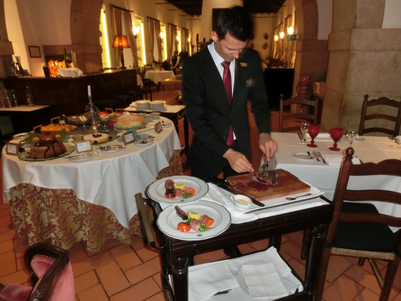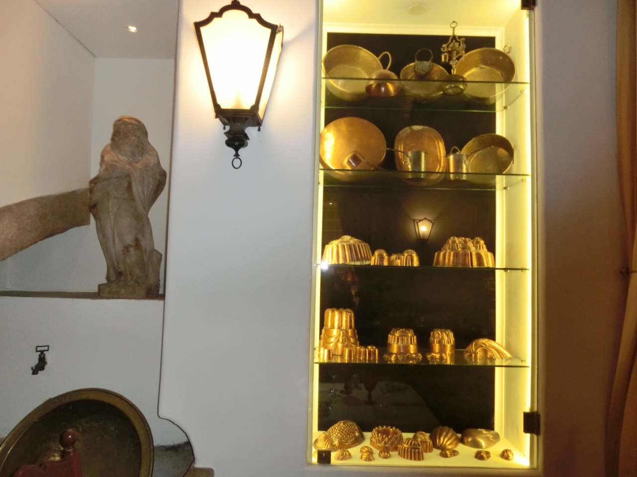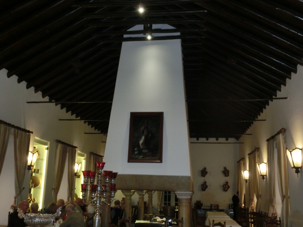 宮殿のかつての厨房がレストランになっており、アルコバサ修道院の台所でも見かけたような古い巨大な煙突が残されていて、壁には宮殿で使われていた銅鍋などが展示されていました。カジュアルに食事をすませたい時は、近くに地元客で大繁盛の食堂もあります。