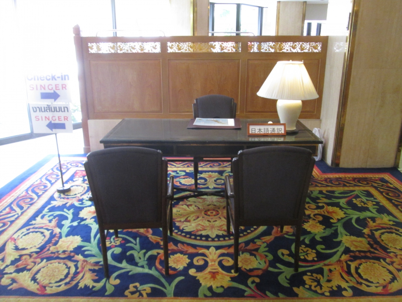 モンティエン ホテル バンコクの1階に日本語通訳のデスクがあった。このホテルは日本人の御用達らしく、館内ではツアーの団体客を見かけた。実際、英語が全く話せない日本人の年配者を見かけたが、サポートをしてくれ、安心して滞在できることを実感した。