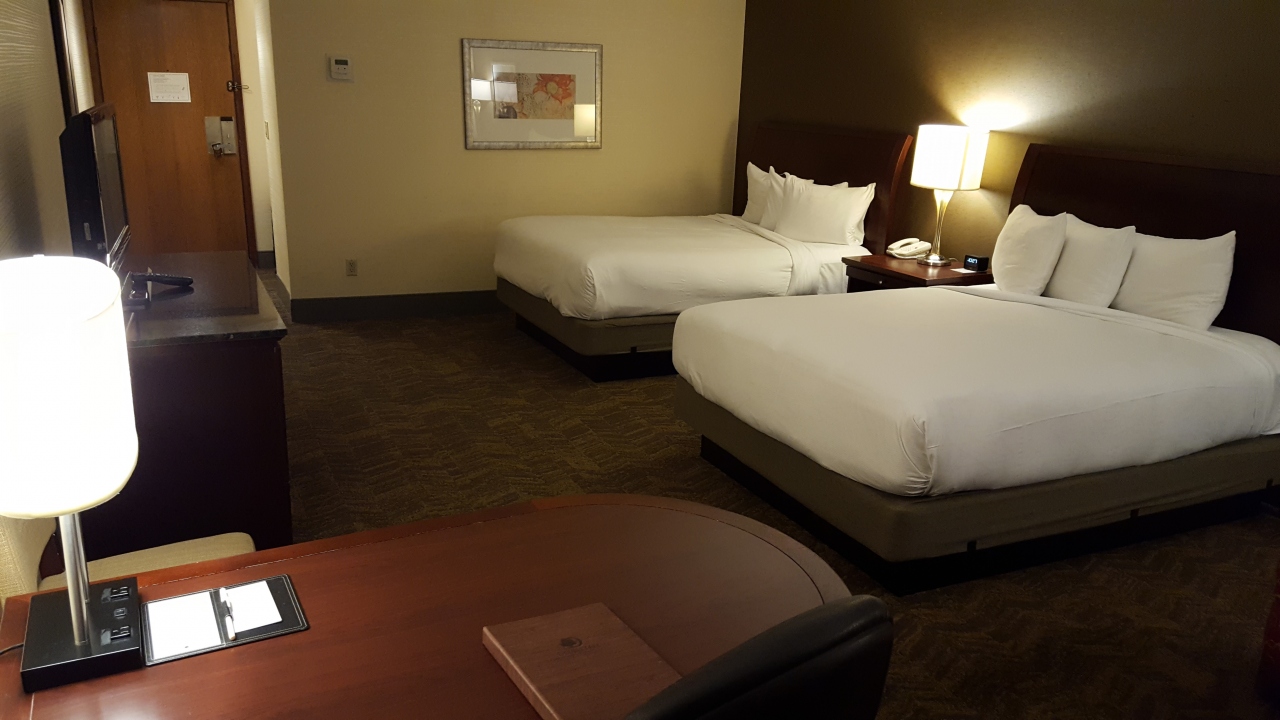 ヒルトンポイント3万ポイントにて宿泊しました。アップグレードしてもらってバルコニー付きの部屋へアサイン。ちと老朽化していますが、広々していて気持ちのよい部屋でした。路面電車の駅が文字通りホテルの前にありますので、ダウンタウンまたは空港まで電車一本でアクセスできる立地の良さが最大の魅力かと思います。朝食もフルーツがおいしかった。