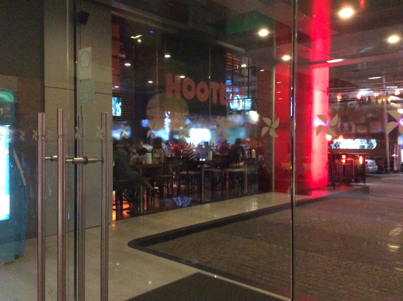 そんなことしなくても、このホテルの出口の左側にセクシーなウェイトレスが給仕してくれる「Hooter's」のバンコク支店があるが、「姉ちゃんが2人しかいない!」と