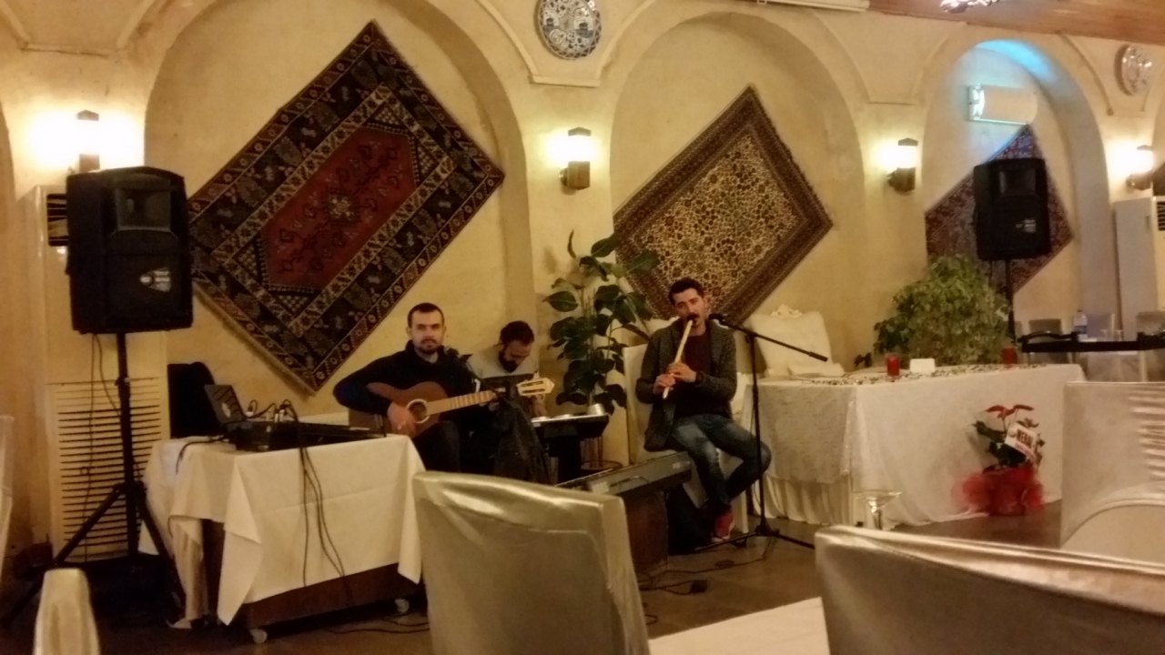 ツアーで訪問しました。新しい洞窟風のホテルです。18:15から夕食、でもホテル側のミスらしく、中国人の団体を先に通し、我々は奥の部屋へ。婚約パーティーがあるので、われわれは19:10までに済ませるよう言われました。パーティー用の大音響のバンド練習の中、慌ただしく、うるさいのを我慢して食事しました。花嫁の父が謝りに来ましたが、彼のせいではなく、ホテル側のミスならホテルが謝罪すべきです。