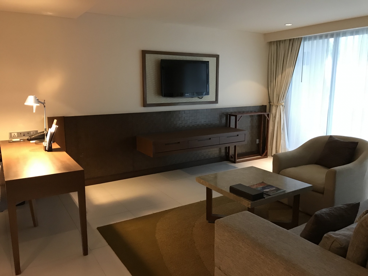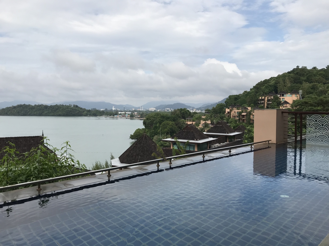 プーケット空港から車で50分くらいのところにあるリゾートホテルです。今回はデラックスシービュースイートに3泊しました。ホテルには12時頃に到着。予約していた部屋は17時まで使えないとのことで、部屋の用意ができるまでデラックスシービュールーム(プール付き)を使わせてもらえたので助かりました。山の斜面に沿って部屋があるので眺めは良く、プールも付いているので、のんびりと過ごすには最適でした。リゾートの敷地はかなり広く斜面ばかりなので、カートを呼んで移動すると楽です。EESTでの朝食では朝からシャンパンを飲むことができ、料理も美味しかったです。静かな環境でのんびりと過ごしたい人には良いホテルだと思います。