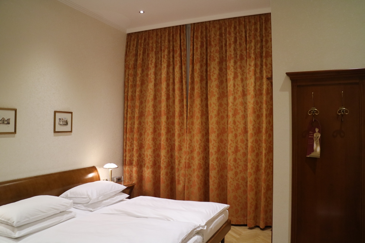 シュテファン寺院から2ブロックで地下鉄入口から2分位。入口やフロントはこじんまりしていますが部屋の入口は高さのあるドアが二重にあり、室内の天井高もかなりあり落ち着いた綺麗な部屋でした。ベッドは予約時ヨーロッパ仕様の様でしたので一瞬考えましたがマットはふわふわでした。もし又ウィーンを訪れることがあればここにします。