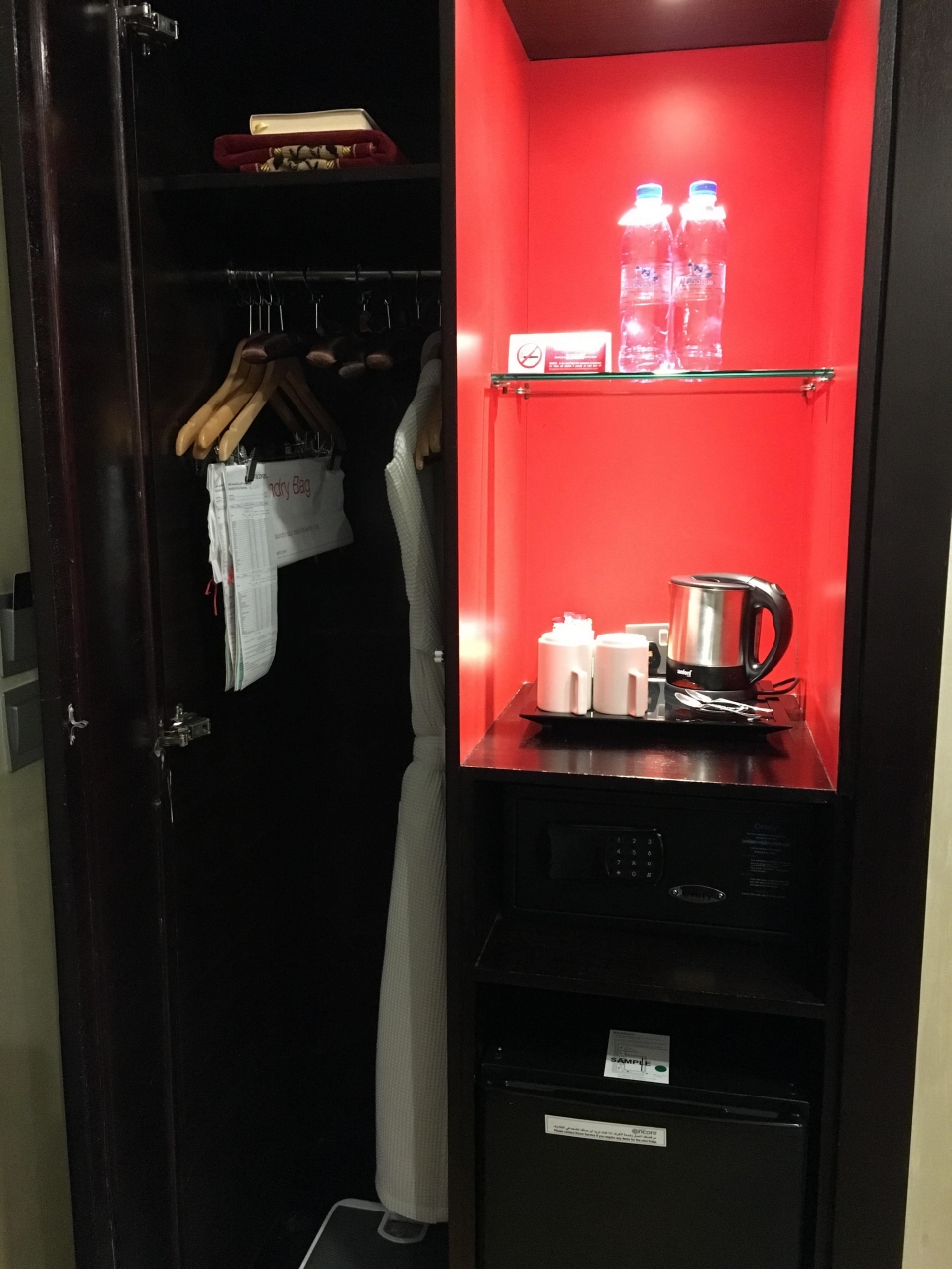 カタール航空からトランジットホテルとして指定されているだけあり、短期で泊まるには最適の中型ホテル。ロビーと同じく赤を基調とした客室はモダンで広々としており、ソファやデスクもあり居住性はとても良いです。トイレやバスルームも綺麗でスタイリッシュ、ストレスはありません。