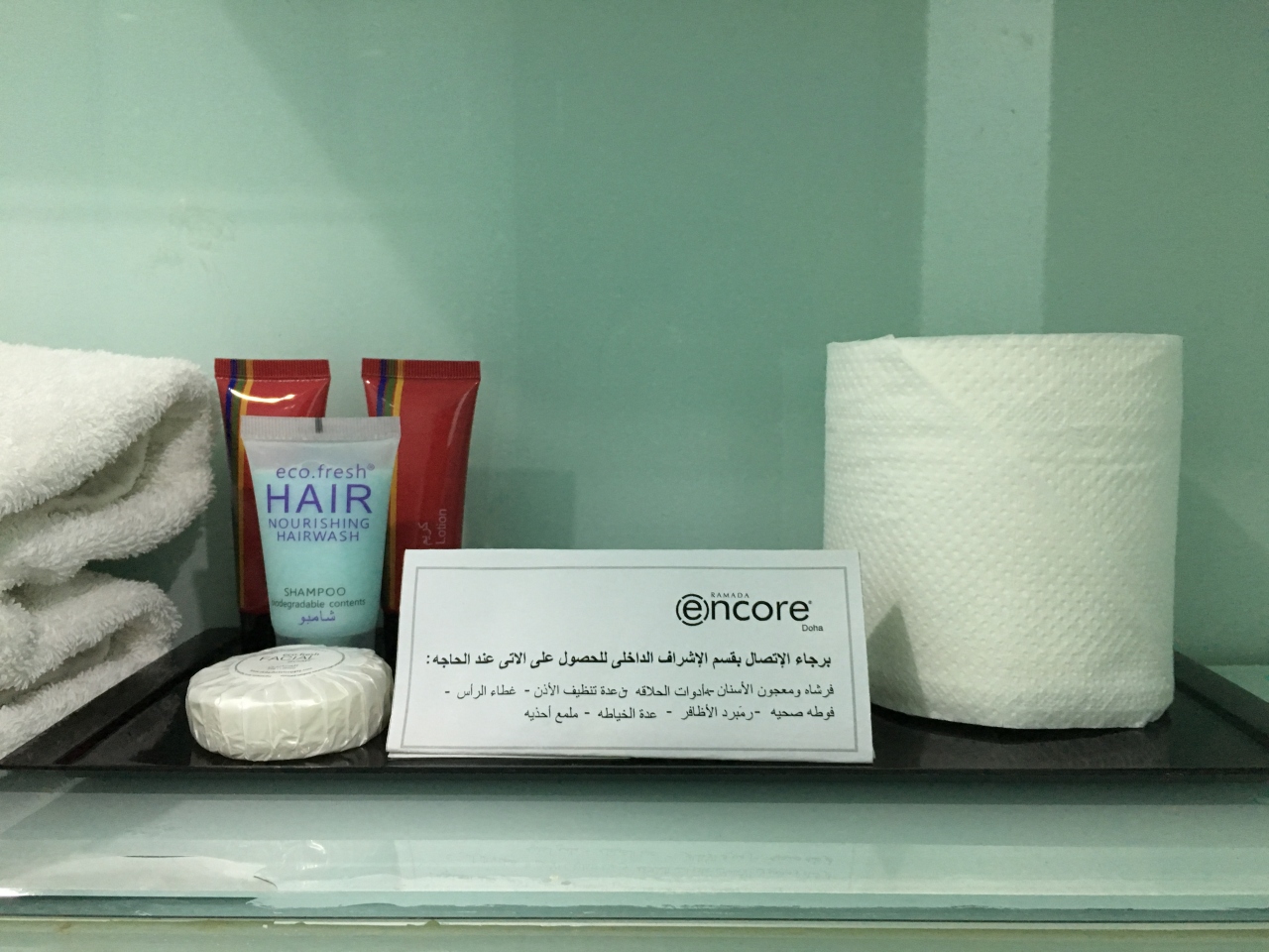 宿代の高いドーハ、これ位のクラスで8000円ほどしました。トランジット利用には十分すぎるクオリティです。