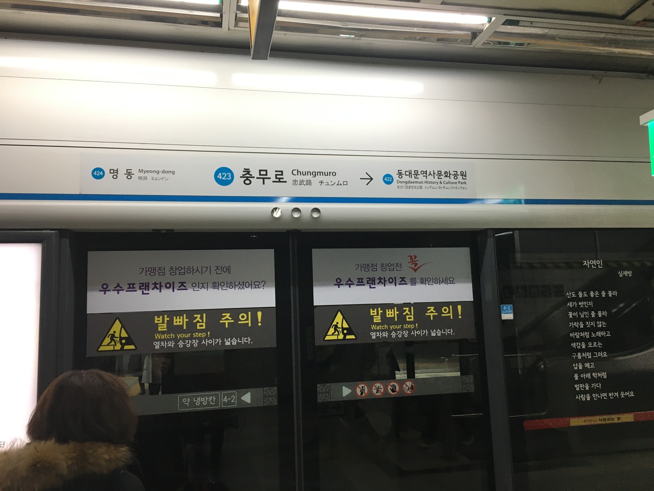 ミョンドンは徒歩でも行ける範囲ですが、地下鉄が安かったので、地下鉄をよく利用していました。