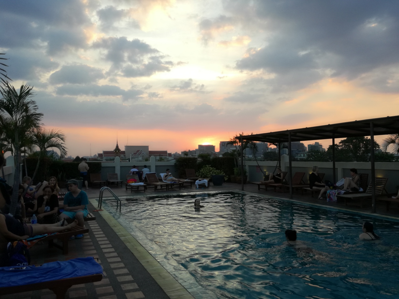 おすすめなのは屋上のプールです。夕焼け時に屋上から寺院が見えますが、夕焼けに照らされてとてもきれいでした。