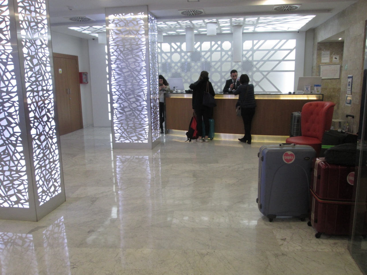 今度のホテルは下町のような繁華街に所在し、施設的には昨日泊まったマドリードのメリダ・アベニーダ・アメリカよりやや新しいかな。