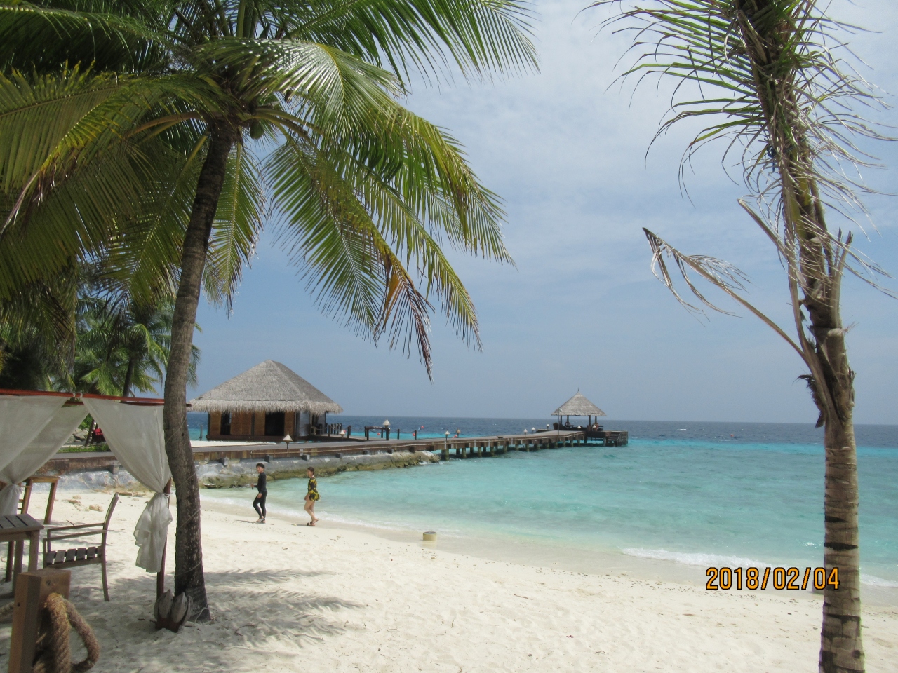 水上ヴィラにしたので、部屋の外のサンデッキからすぐに海に降りることができて