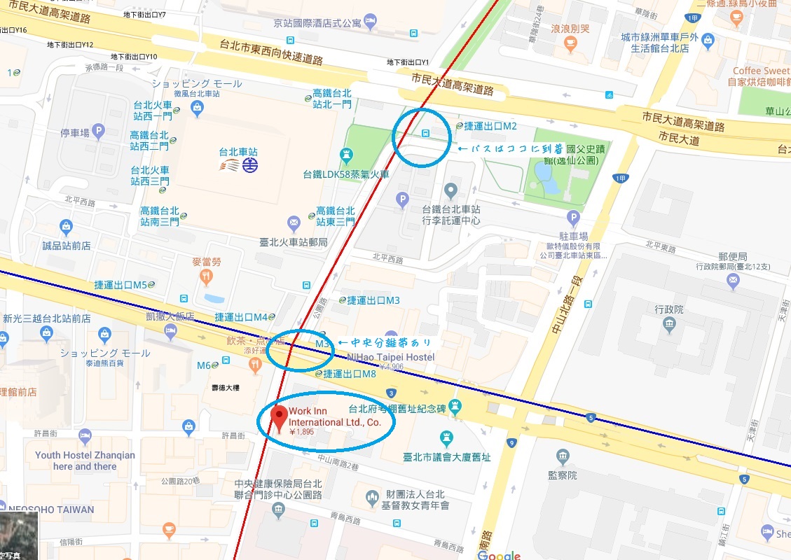 桃園空港から午前3時過ぎに台北駅にバスで到着しましたが、ホテルには5分くらいで着くと思います。(荷物の大きさ・重さ次第ですが)