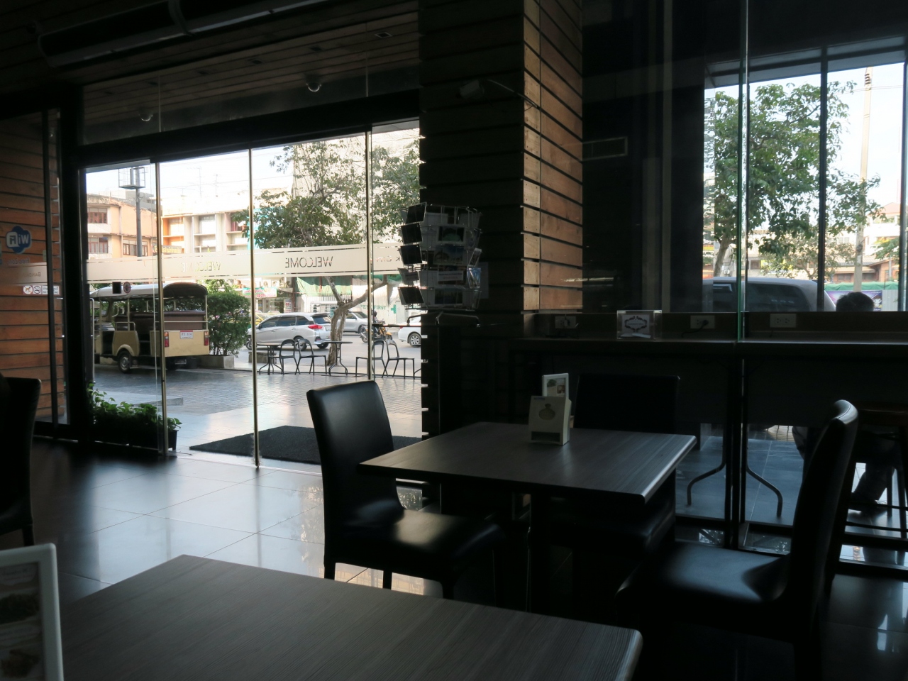 店内はカウンター席とビジネス席(PCやプリンターあり)、テーブル席があり全席禁煙がうれしい。スタッフは不愛想で英語がつうじない。