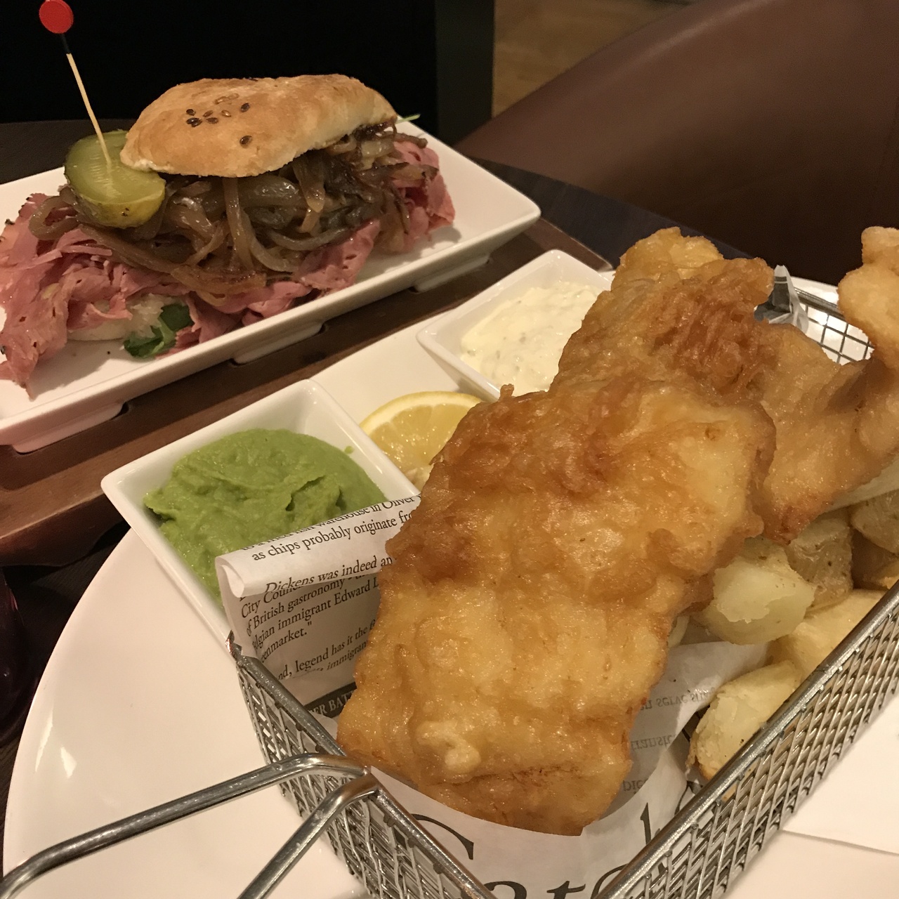 ホテル1階のレストランはスポーツバーみたいになっています。フィッシュ&チップスがでかくて美味い!