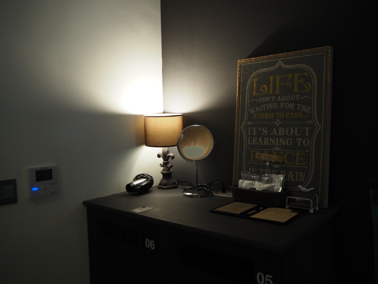 部屋の奥に、姿見の鏡が置かれ着替えるスペースが設けられています。