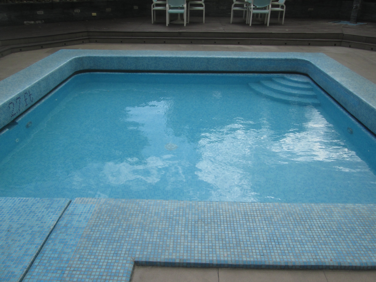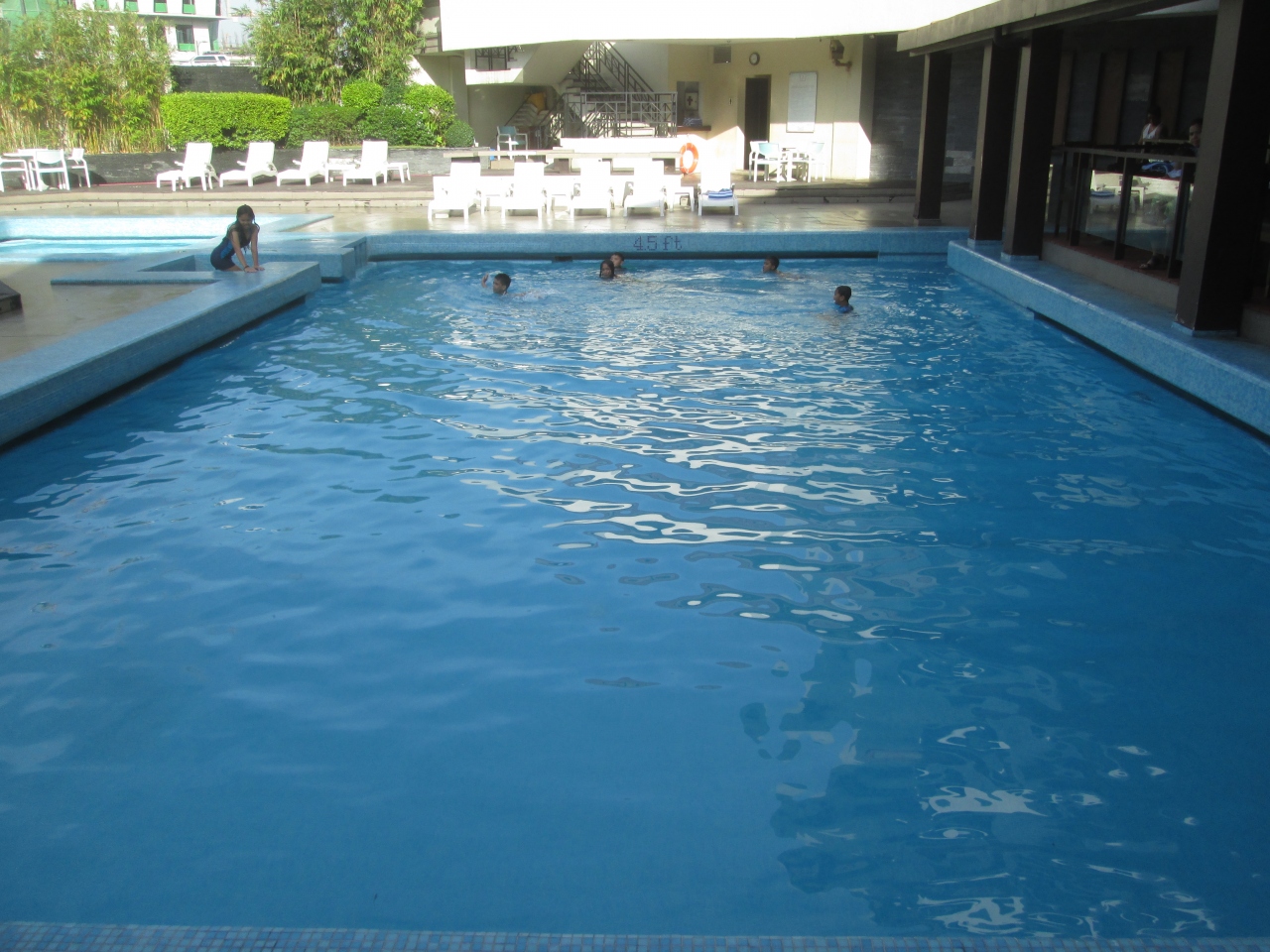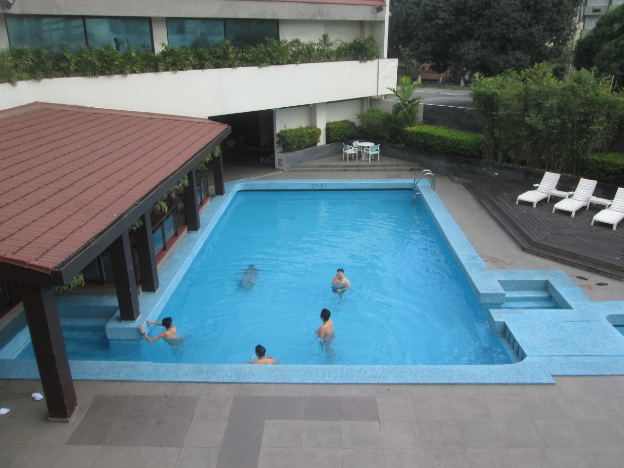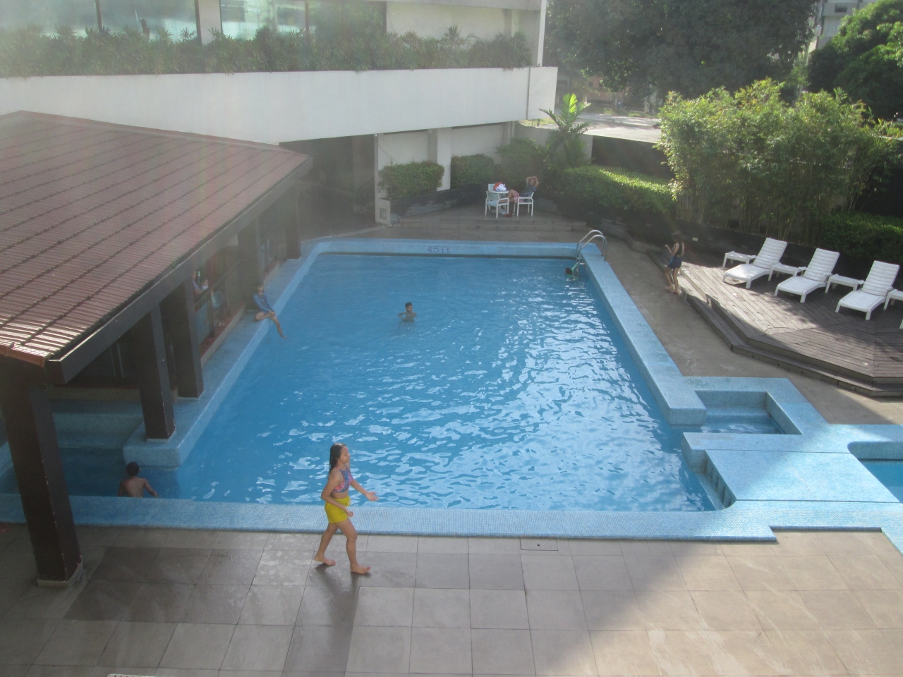 ヘリテイジ ホテルにはプールがあった。エルミタ・マラテ地区のエコノミーホテルにはプールが付いていないことが多いが、パサイ地区はプール付きのホテルが多い。プールは1階にあるが3階の廊下を通り、非常のような階段を利用しアクセスした。